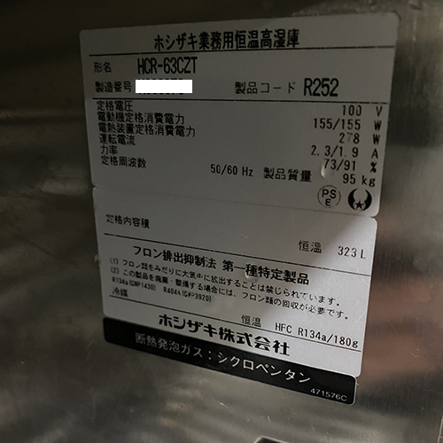 恒温高湿庫 ホシザキ HCR-63CZT 業務用 中古/送料別途見積
