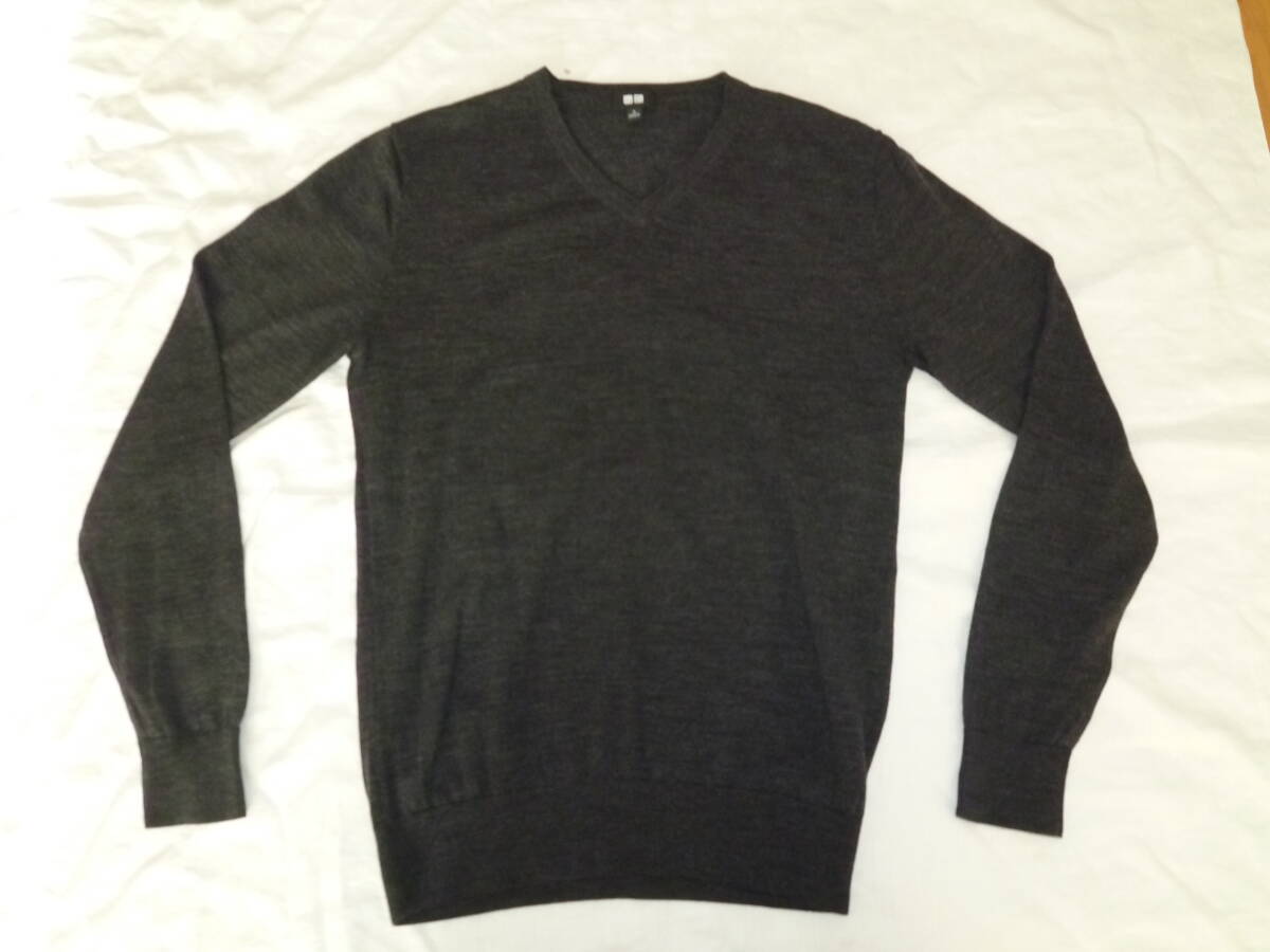 USED ユニクロ エクストラファインメリノVネックセーター(長袖)ウール 薄手 S ダークグレー 351-173211