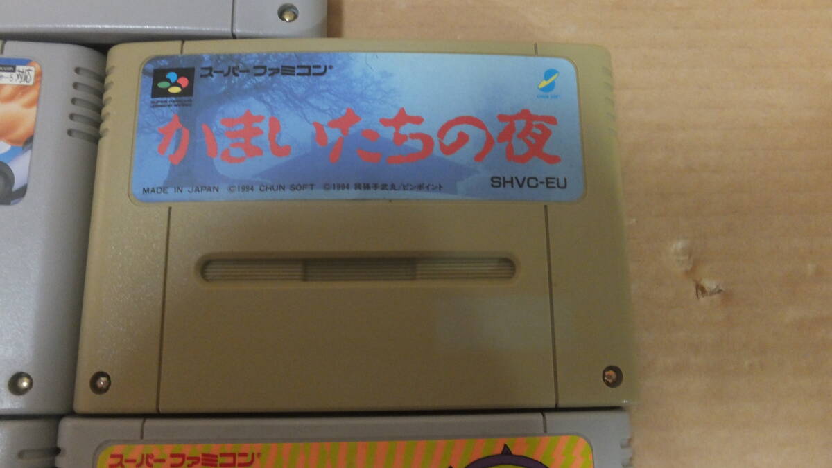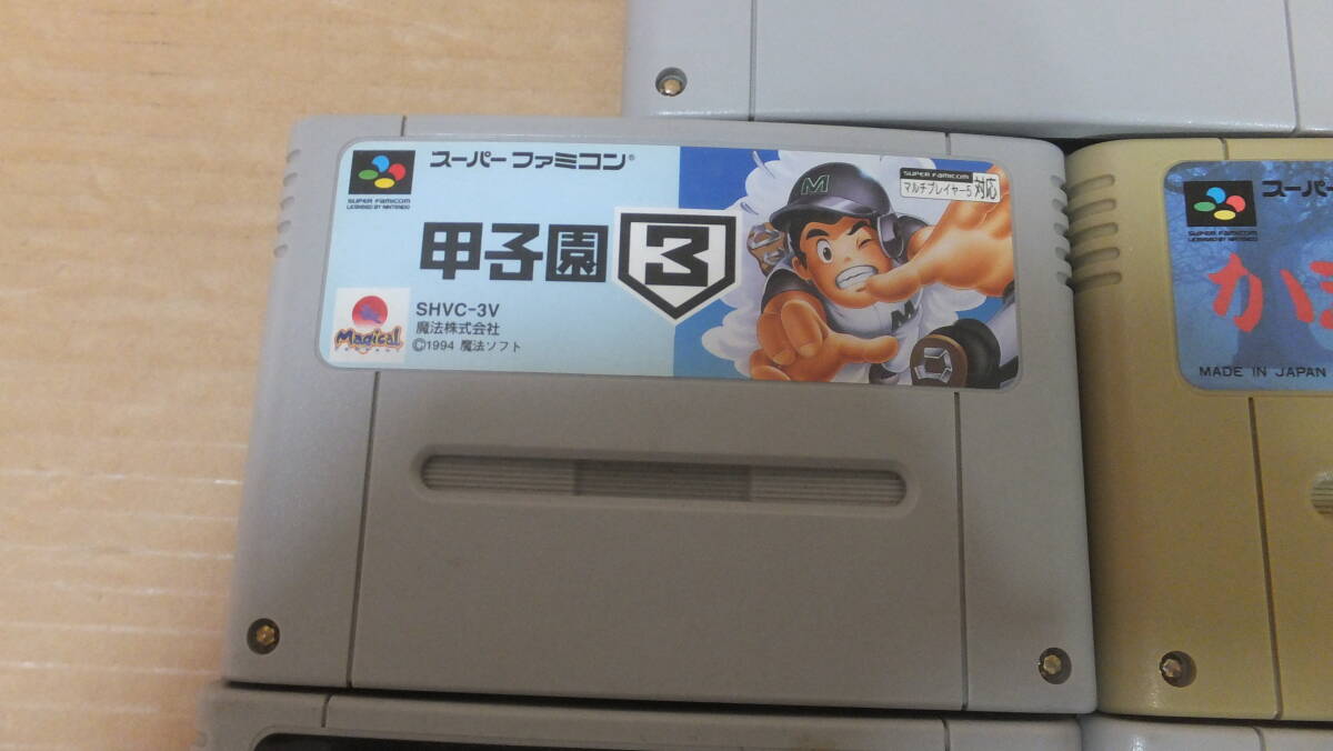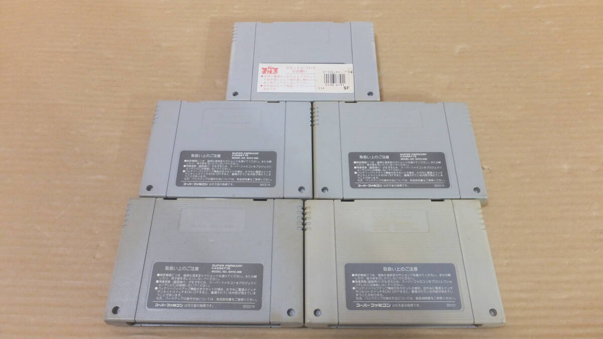 任天堂 スーパーファミコン ゲームソフト 5本セット の中古品です。収集コレクションの放出で、特に問題なく使用していた物の出品となります。一部わずかな汚れや日焼け等による変色が有る物がありますが傷等に関しては特に目立つ様な物や使用に際し致命傷になる様な物は無い様です。時間が取れず個々の動作確認等に関しては未確認です。 基本的には商品の性格上ジャンク品扱いにて部品取り・研究用・コレクション・オブジェ等の使用でノークレーム・ノーリターンにてお願いいたします。