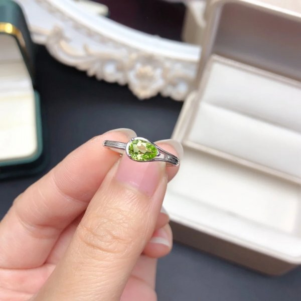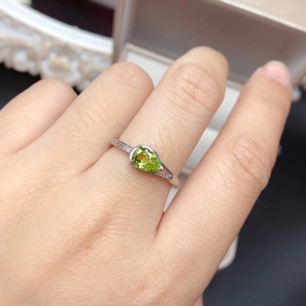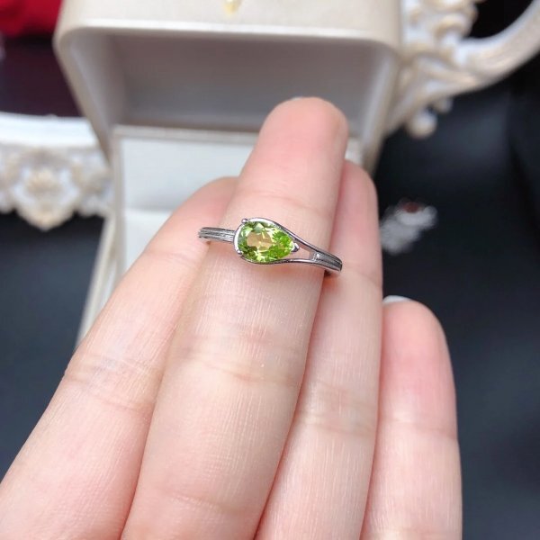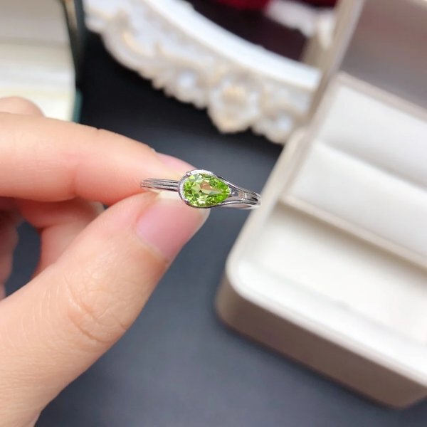 女性用ナチュラルペリドット付きシルバーリング,5x7mm,925ファインジュエリー,バースデーギフト,高級ジュエリー