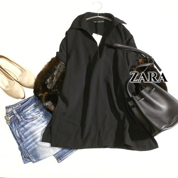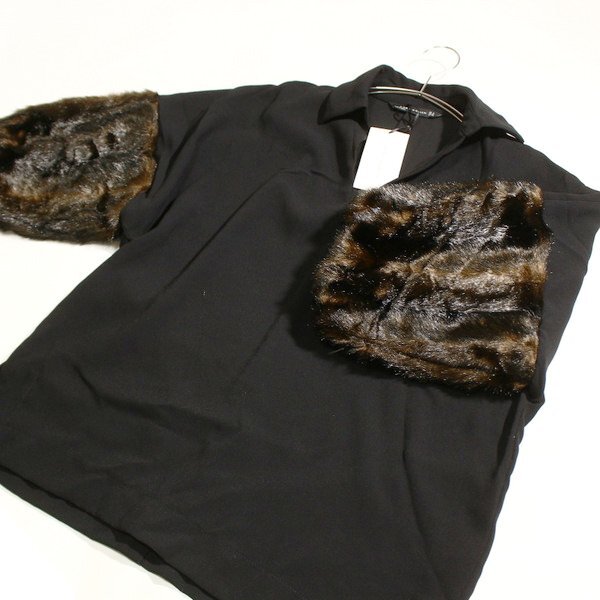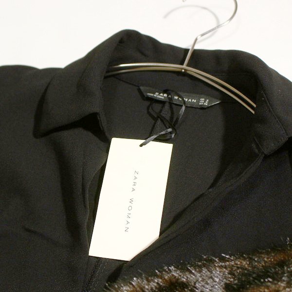 未使用 ザラ ウーマン ZARA WOMAN ゆったり可愛い シボ・スーツ生地 フェイクファー カットソー S 秋 合服 24A12