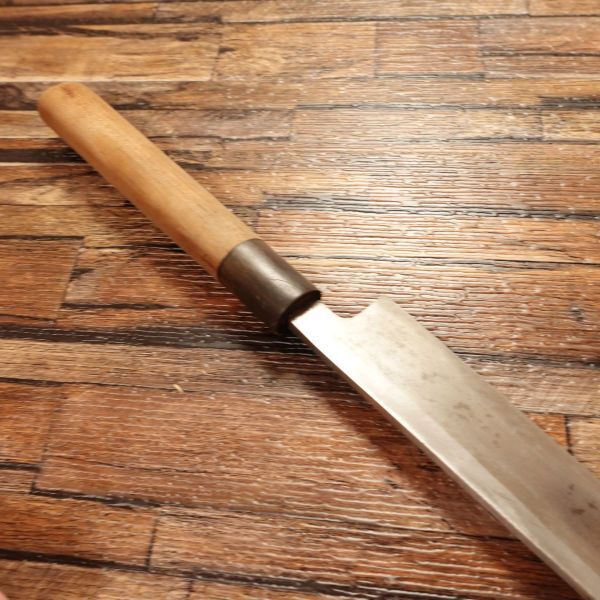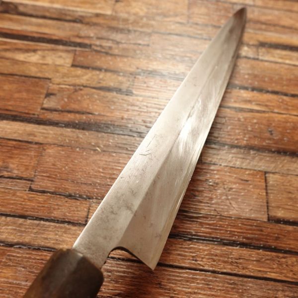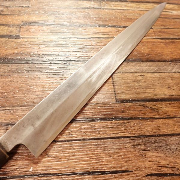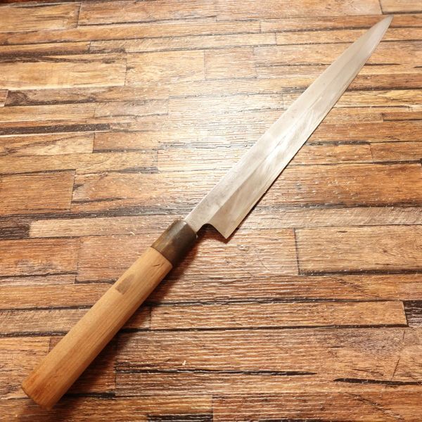 久 柳刃包丁 研ぎ済 刺身包丁 水牛柄 銘判読できず