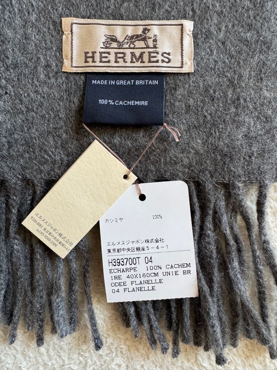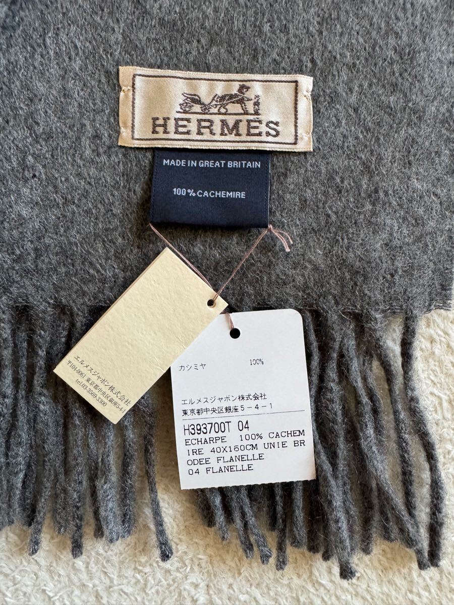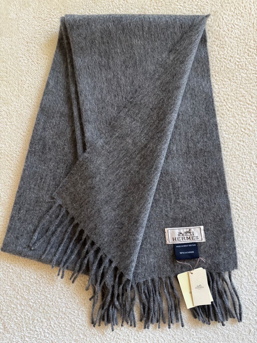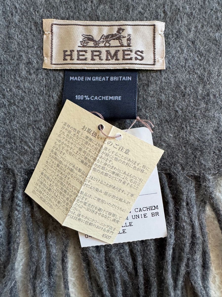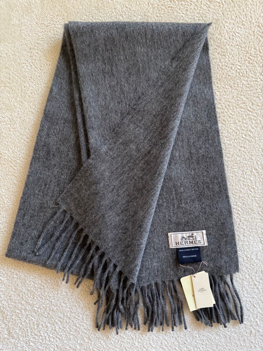 商品名 : 新品 未使用 エルメス HERMES カシミア フリンジ マフラー グレー