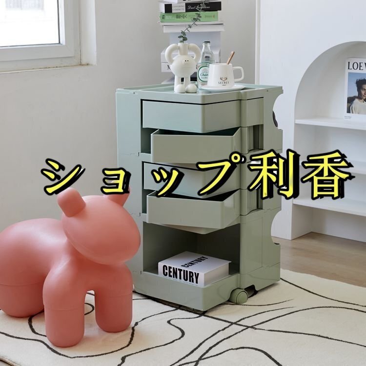 サイドテーブル キャスター付き 引き出し90°回転 3段/引き出し4個 多機能収納 ソファーサイド ベッドサイド 防水 家具 デスク下 グリーン