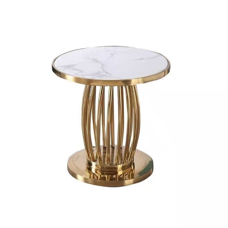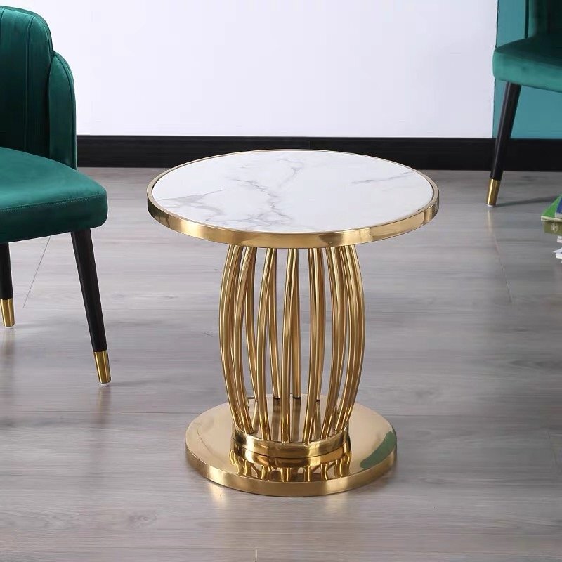 北欧 ステンレス茶卓 客間円形サイドテーブル ソファー移動コーナーテーブル 大理石 贅沢サイドテーブル