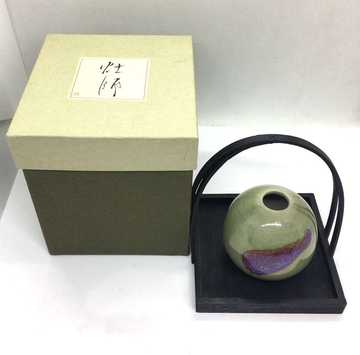 【未使用保管品】師 とうじ 花ごよみ 青磁 一輪挿し 花瓶 155-019