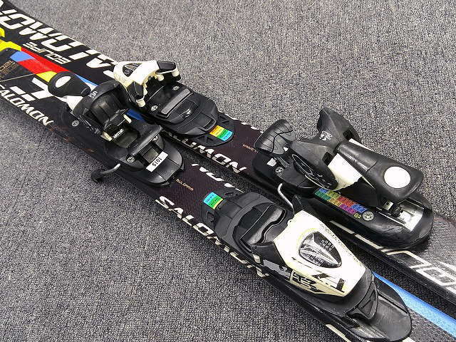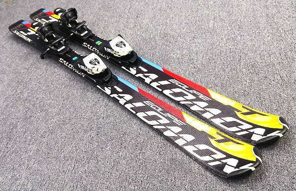1753★サロモン EQUIPE 120cm★中古/サロモン/補修あり/子供用/チューンナップ済み/ビンディング設定(無料)/ブーツ・ストック追加可