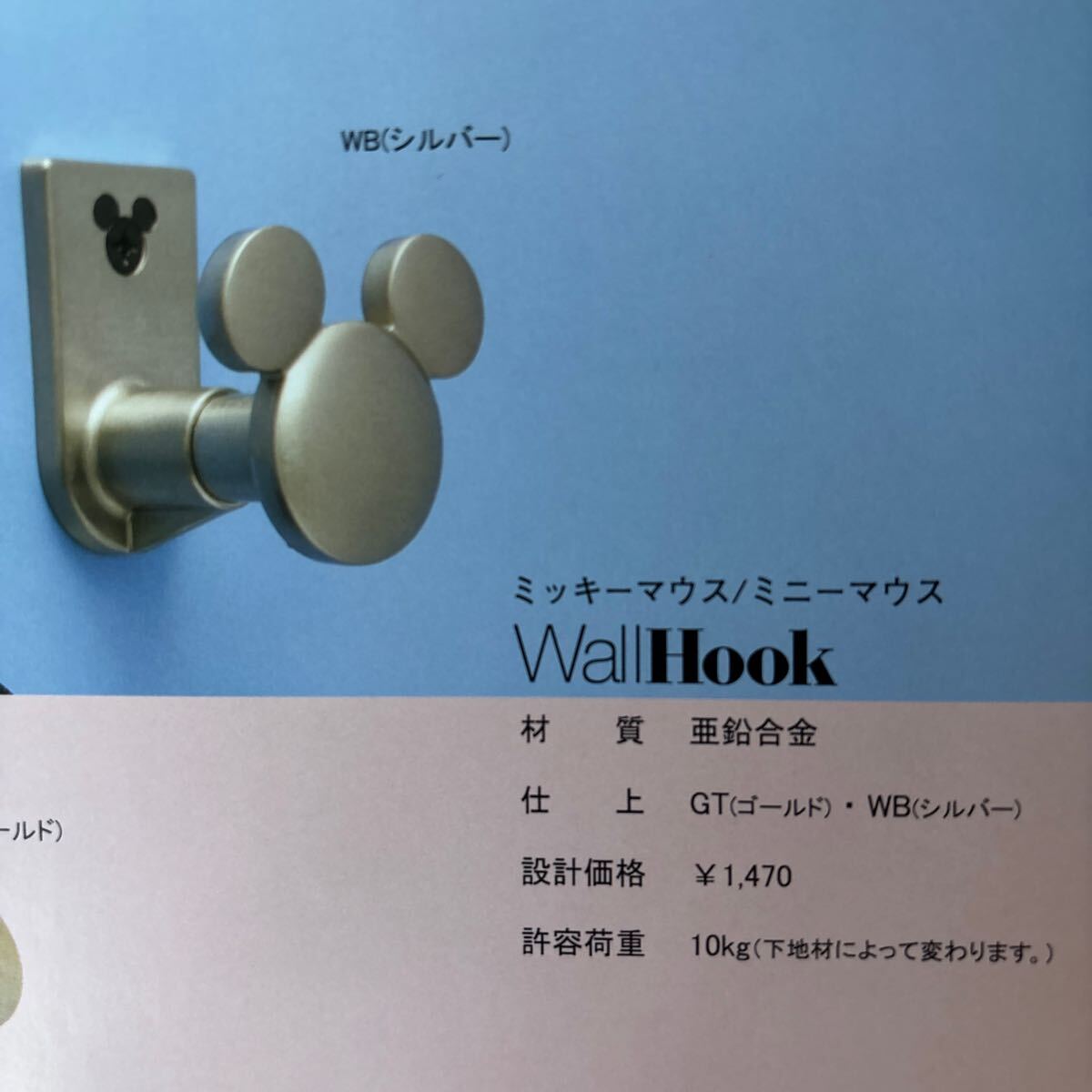 絶版 ミッキーマウス フック 1個 シルバー ディズニー・ハードウェア・コレクション (ウォールフック)長沢製作所 未使用