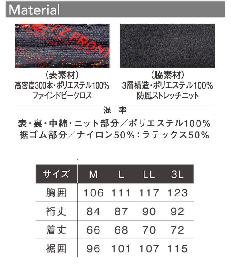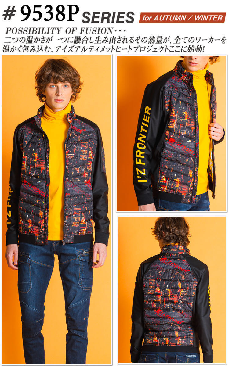 [在庫処分] 防寒服 秋冬 アイズフロンティア 防風ヒートジャケット(服のみ) 9538P Lサイズ 68ナイトビュー
