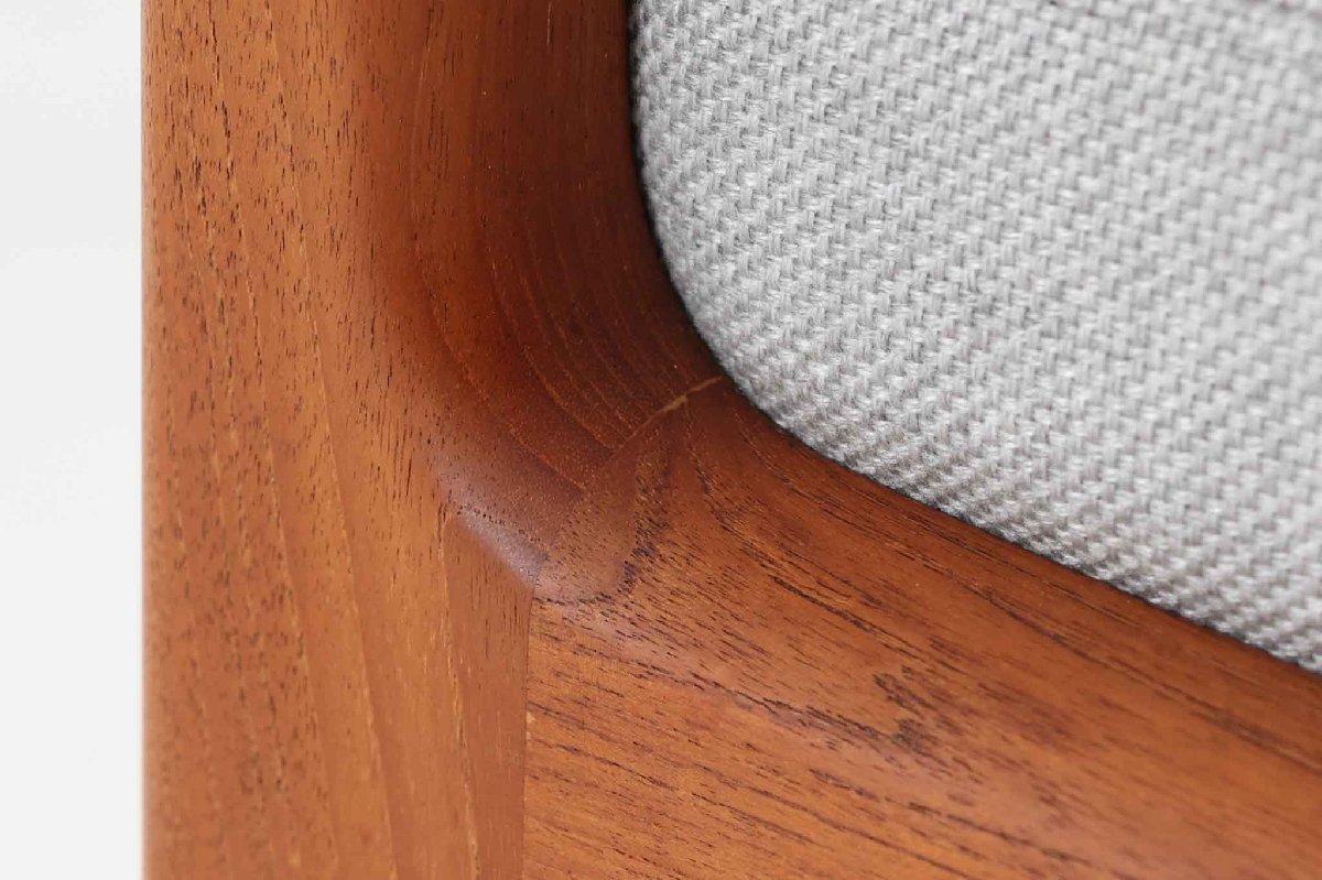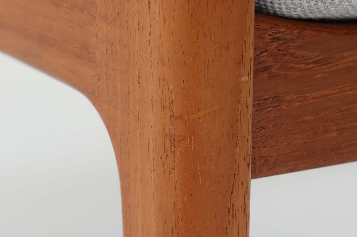 コンディション | メンテナンスを行いました。木部には細かい傷、擦り傷、傷の修理跡が見られますが、全体的には綺麗な状態です。 ※ビンテージ品です。お伝えしきれない細かい傷や使用感等が御座います。ご了承下さいませ。 「メンテナンス内容」 木部はサンディング後、オイル塗装にて仕上げております。クッション内部はウレタン交換後張替え済みです。座面下布に破れがあったため張替済みです。 |