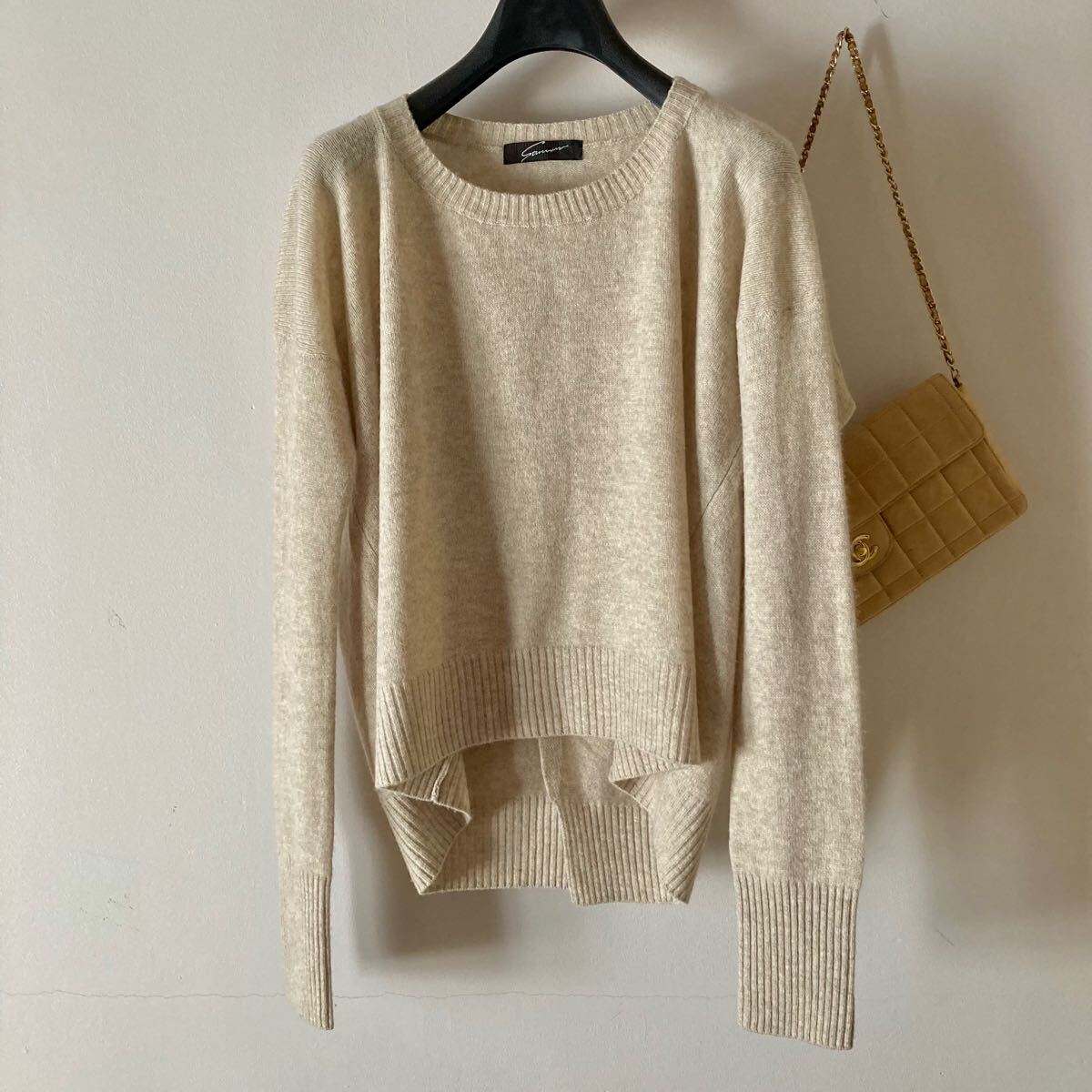 *ご覧下さり有難うございます。 当IDでの出品は順次終了させて頂きますので、 今後は こちらのID からご覧頂けますと幸いです。 ドゥロワーなどの高級なカシミヤニットをたくさん出品中です。 上質な大人のブランド、スタニングのニットです。 非常に軽い高品質のカシミヤウール素材。 柔らかいふわふわの素材感、 薄手すぎないハイゲージ、とろけるような繊細な滑りの贅沢な肌触りです。 カラーは落ち着いた綺麗なグレージュ。 立体感が素敵なクルーネックデザイン、こなれたバックスリットのシルエット。 上質な大人の女性のスタイルに。 ■ ■ 素材 ■ ■ カシミヤ 30 ウール 70 % ■ ■ サイズ ■ ■ 【F】ゆるめ 肩幅 59 袖丈 52 身幅 58 着丈 49-54 cm ■ ■ 状態 ■ ■ 着用2.3回程度、薄く通常範囲の着用感はございますがまだまだ綺麗な状態です。 ※繊細なニット類は一回着用でも着用感が感じられる場合もございます。 ノークレームノーリターンとさせて頂きますので自己紹介をご確認の上ご入札をお願いいたします。 その他にも上質なカシミヤをたくさん出品しております。 ***その他の出品物を見る*** |