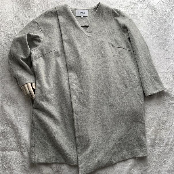 ENFOLD エンフォルド 綿毛 コットンウール チュニック グレー ふんわりタック コクーンワンピース 七分袖 レディース服