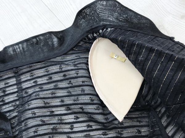 lginZ:beline レディース 肩パッド 前開き 透け シアー 薄手 ジャケット 13AR 黒ゴールド です。