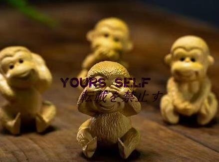 木彫り 猿 置物 四猿 さる オブジェ 見ざる 言わざる 聞かざる 木製彫刻 金運アップ 開運 風水グッズ インテリア