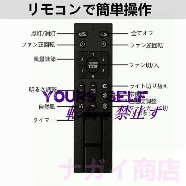 ・リモコン付き:調光調色、タイマー設定、風量調節など全ての操作が可能なリモコン式、気分やシーンに合わせて明るさや色調を自在に調整できます。
