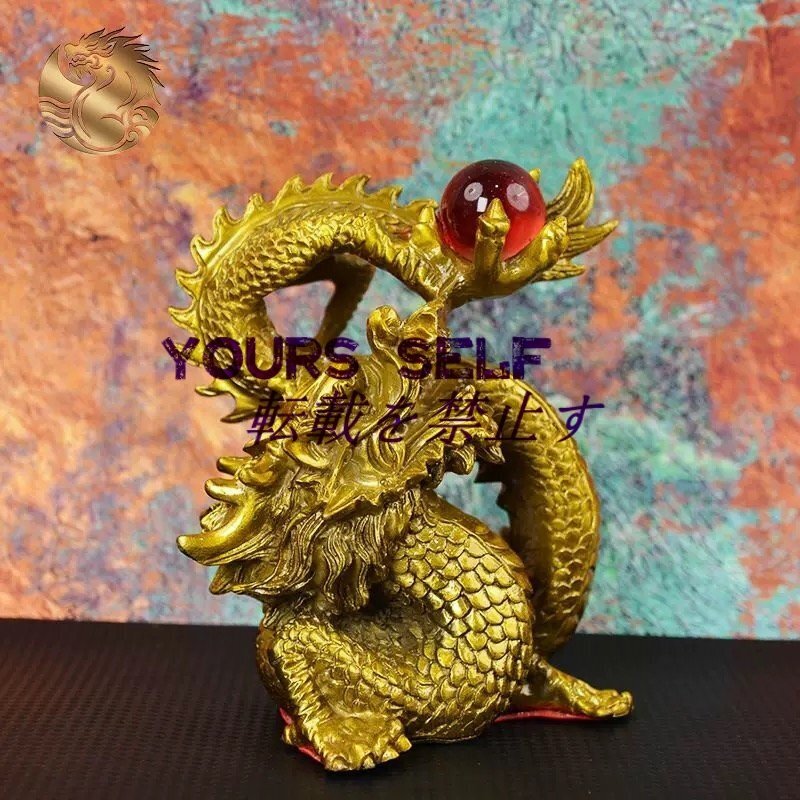 極美品 龍 置物 5本爪 ゴールド 水晶玉持ち金龍 オブジェ 昇運 開運 金運アップ 銅製 商売繁盛 風水龍 厄除け 贈り物
