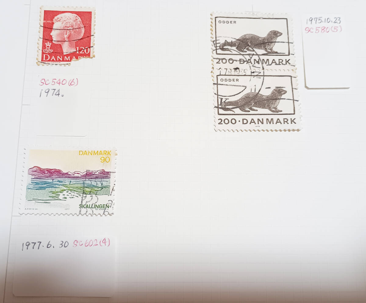 デンマーク切手 使用済1970年代~1990年 10枚 長期保管品