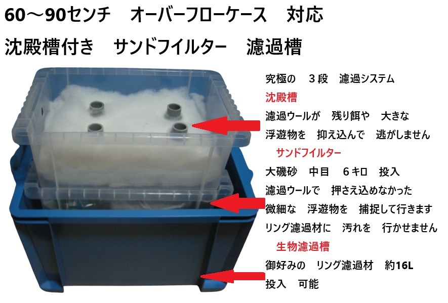 沈殿槽付き オーバーフロー 3段濾過槽 60~90センチケース 対応 3