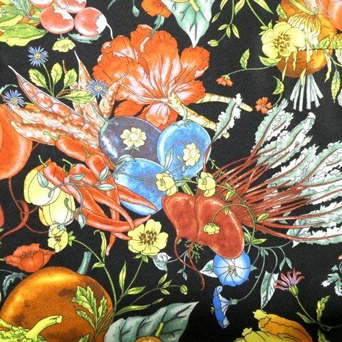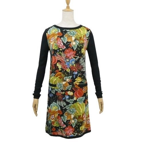 前身頃はカラフルなお花や野菜柄、袖と後身頃はニットのチュニックです。