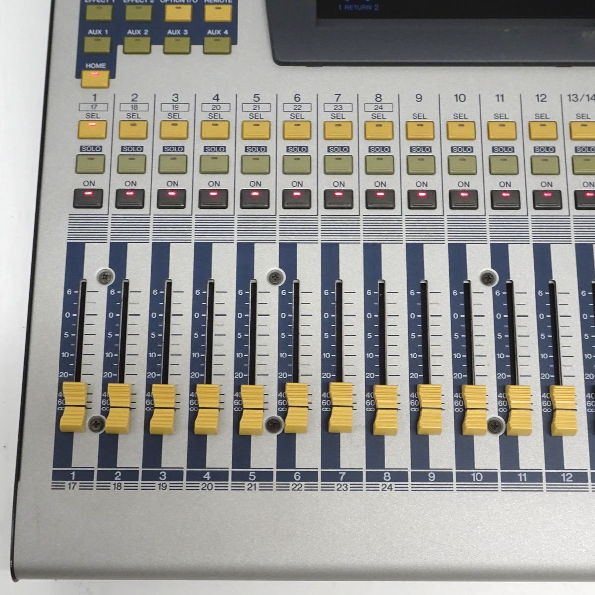 商品説明 YAMAHA 01V デジタルミキシングコンソール の出品です。 I/Oカードは増設されていません。 ☆動作確認に関しまして ・チャンネル12までのXLR端子入力OK ・チャンネル16までのフォーン端子入力OK ・STEREO OUTの全端子出力OK ・2TR IN の全端子入力OK ・ヘッドフォン出力、調整OK PHONES調整つまみ少しガリあります。 ・フェーダーや各ツマミの動作OK ・SEL/ON等のスイッチ類反応OK ・パラメーターダイヤルの反応、操作OK ・ファンタム+48Vの動作OK ・メーターの動作OK ・フェーダーキャリブレーションOK ※ある程度の追従はしていますが、中古品で多少の劣化はありますのでご了承下さい。 ☆注意点につきまして ・PANつまみにガリがあり、右に回しても左に動いたり逆に動いたり操作困難です。 ・全体的に接触ノイズやガリがありましたので清掃にて軽減させました。 ・フェーダーキャリブレーション初回、7、10、15/16の動作が怪しかったです。 清掃とスライダーを繰り返し、自然に動くようになっております。 ・液晶上部の方、1ライン黒が出にくいのかチカチカと動いていました。 写真10枚目に載せておりますが少し分かりづらい症状です。 動作確認後、設定は工場出荷状態に変更しております。 PAN機能に問題がありますので、中古/訳あり 動作品として出品させて頂きます。 商品詳細