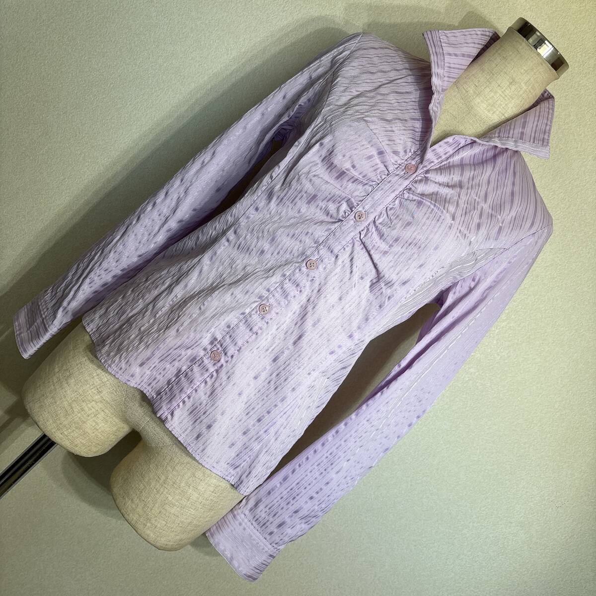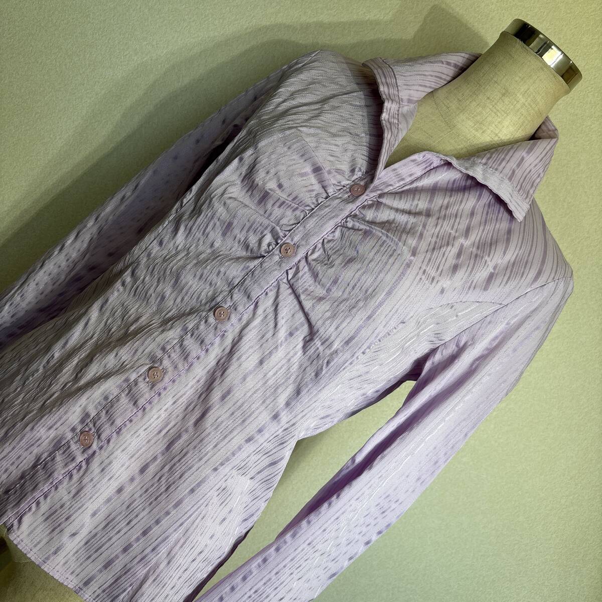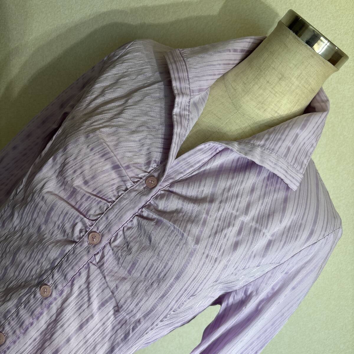 | C202■ナラカミーチェ★ピンク紫/サテンストライプ&ストレッチ入★ギャザーブラウス■Ⅰ | ||||||||||||||||||||