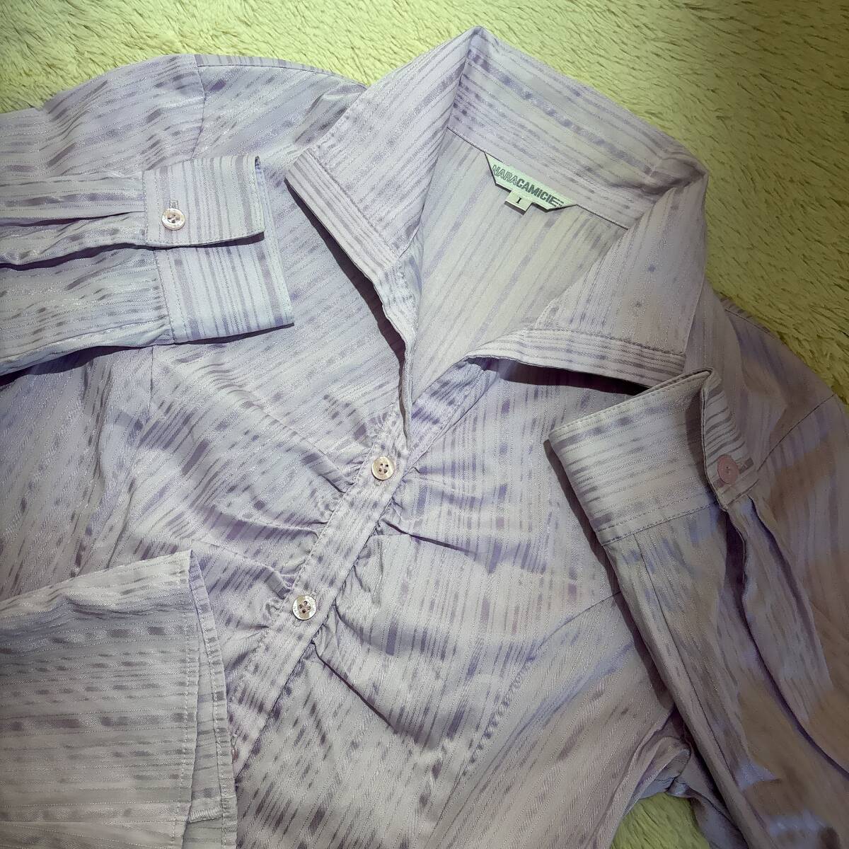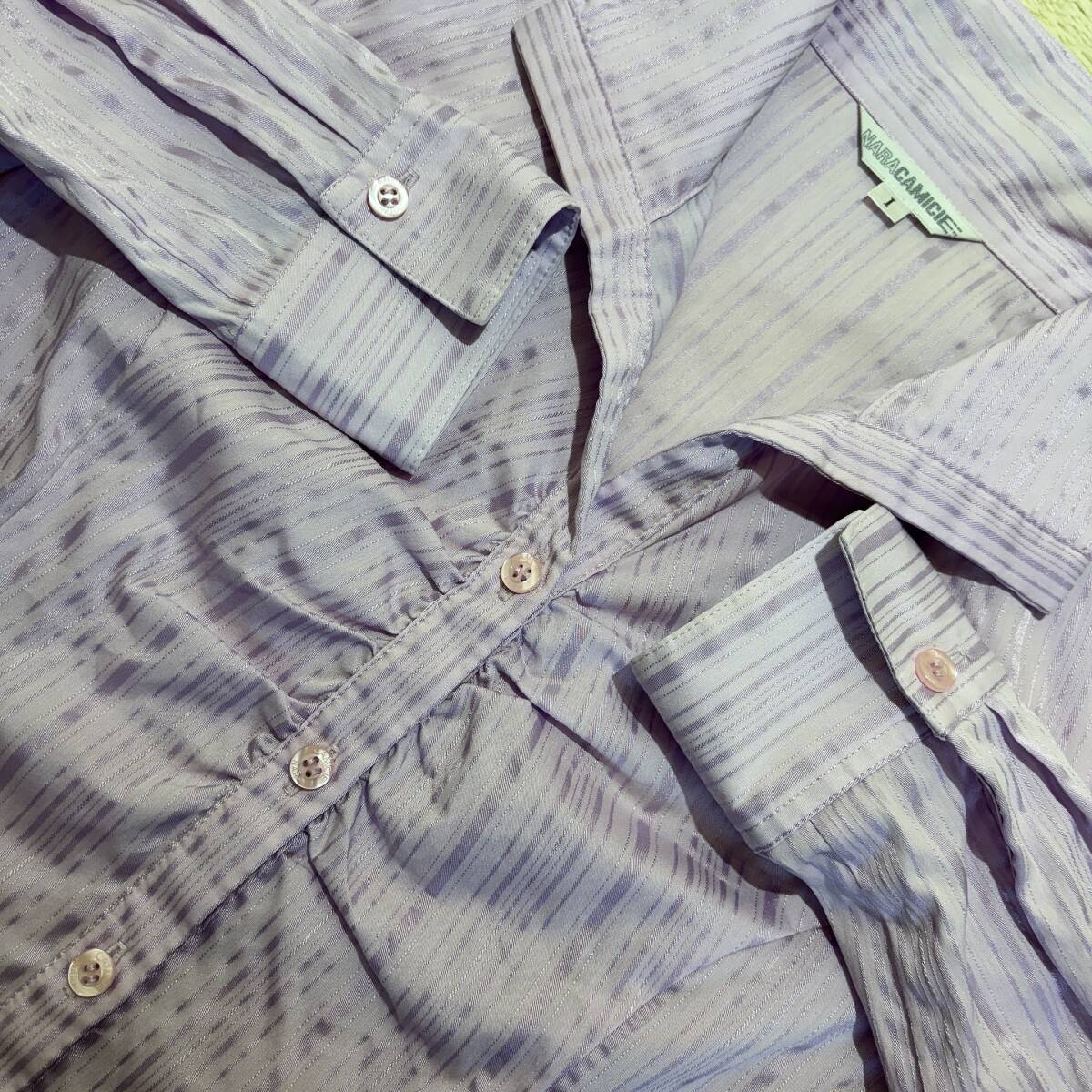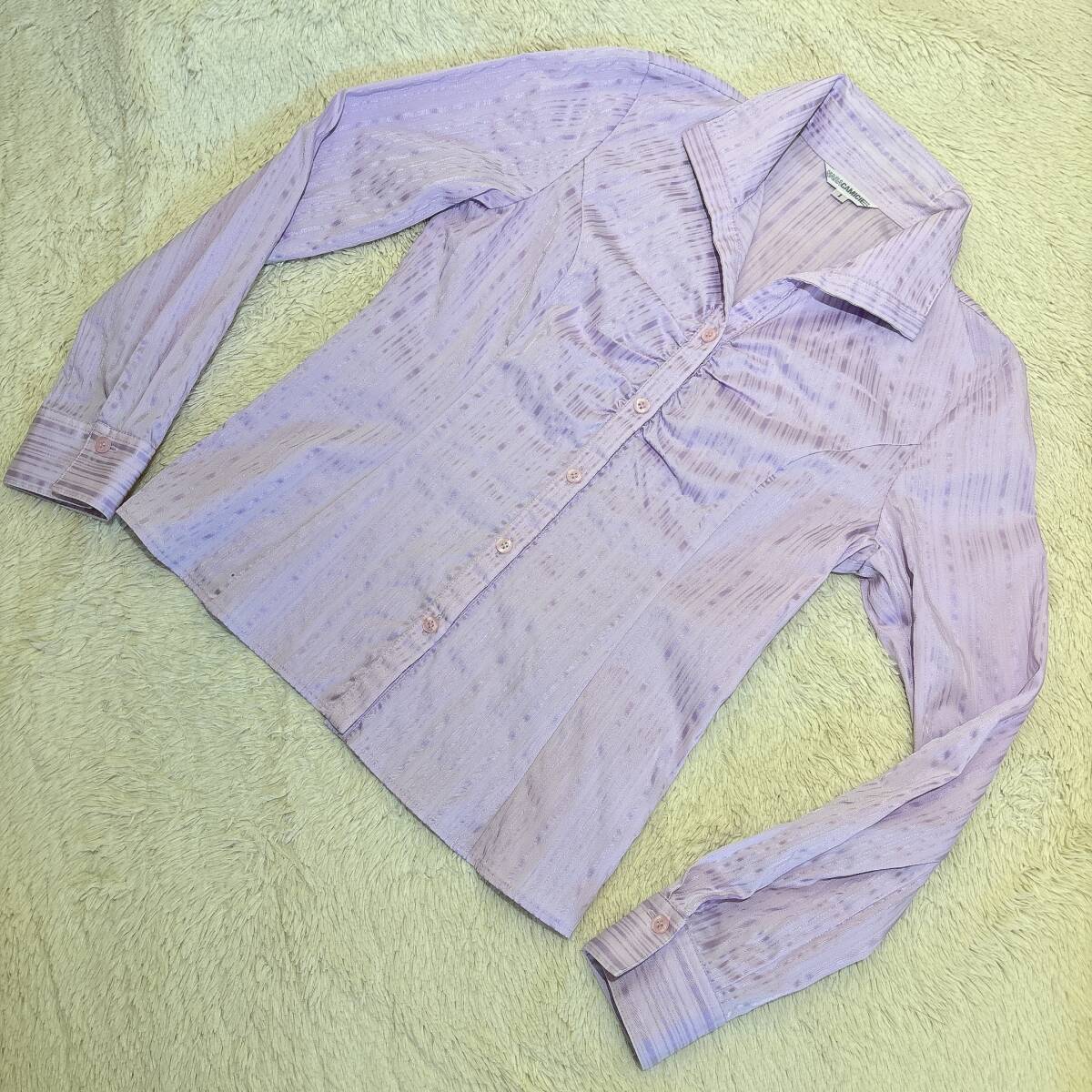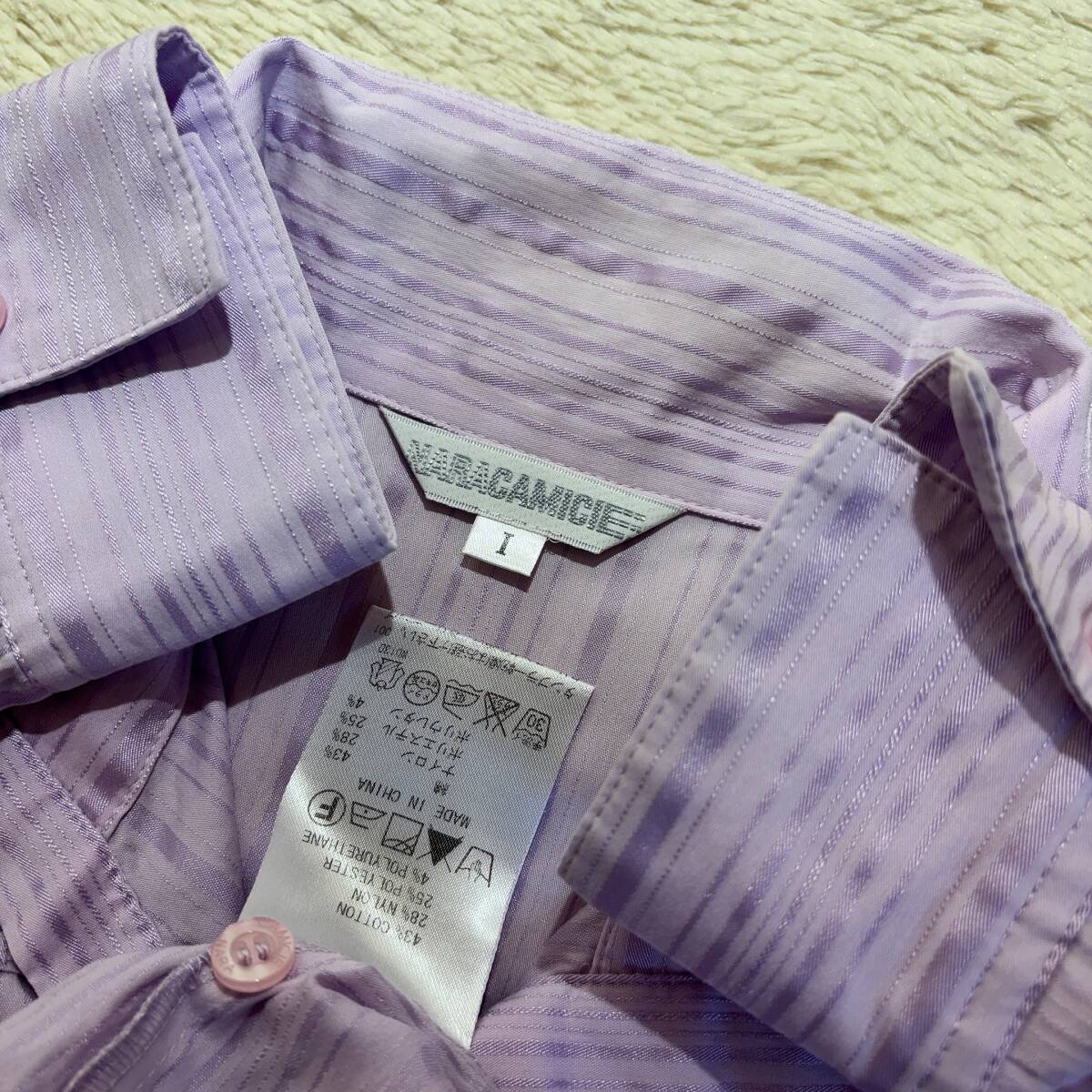 | C202■ナラカミーチェ★ピンク紫/サテンストライプ&ストレッチ入★ギャザーブラウス■Ⅰ | ||||||||||||||||||||