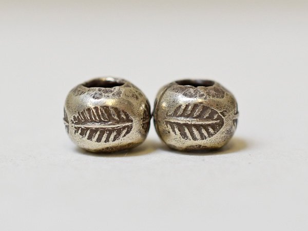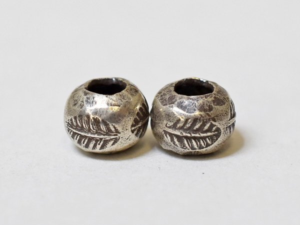 アクセサリー製作の定番! カレンシルバー葉紋様扁平丸型ビーズ2個セットL(Φ7.0mm) | |||