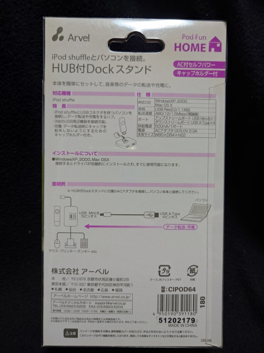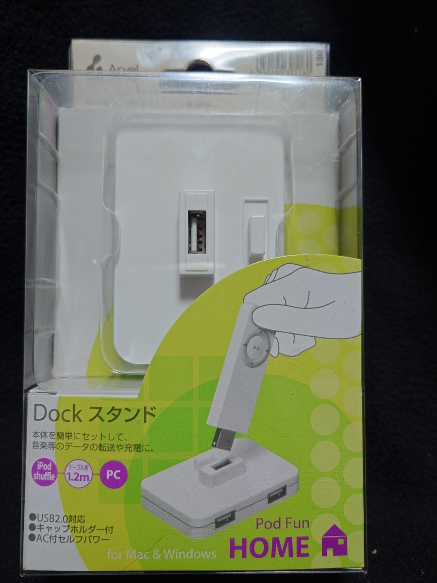当時物iPod Shuffle用のデータ転送ドックとUSBハブです。