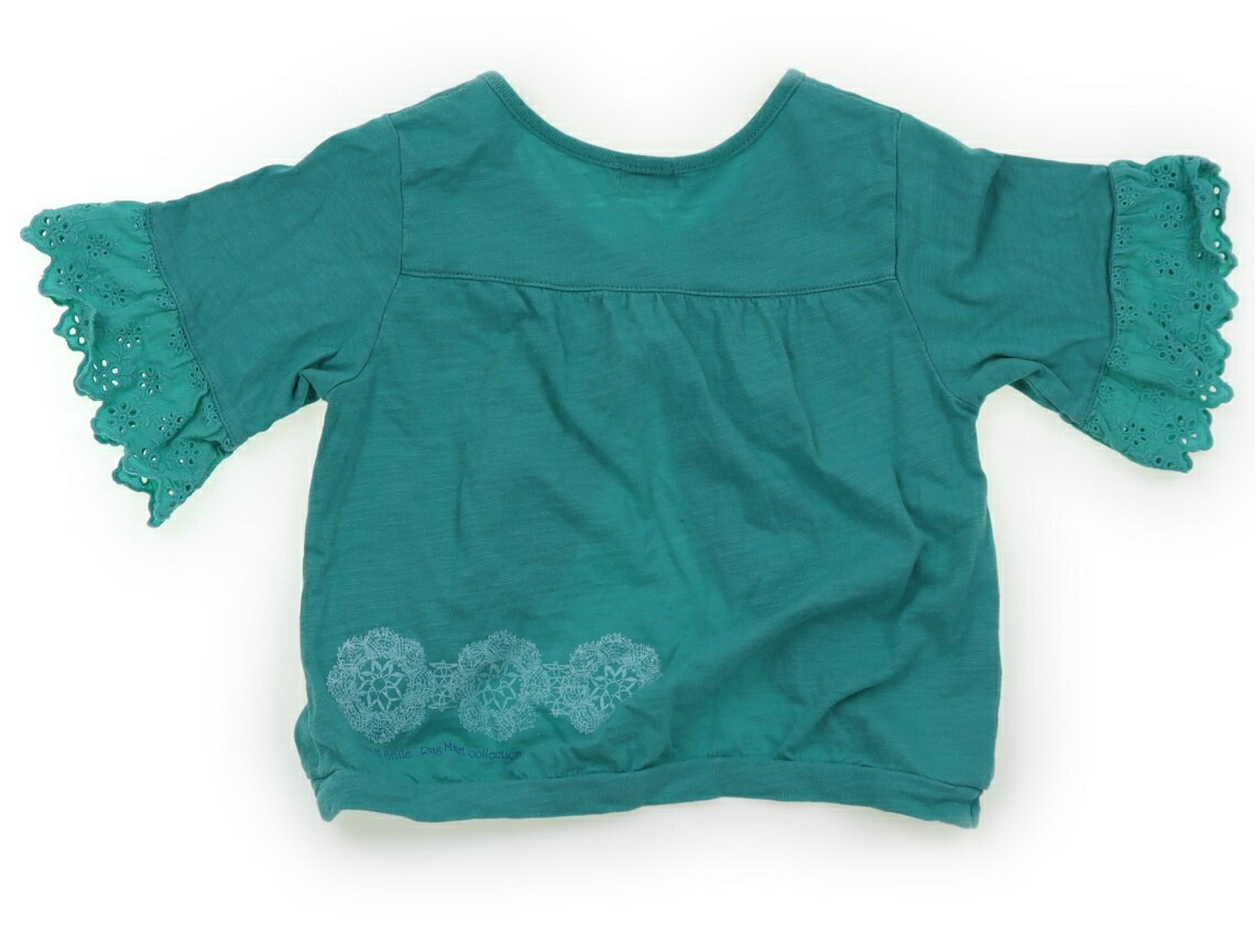 コットンカットソー生地。袖口はレース地。ボタンは一番上のみです。全体的に毛羽立ちとヨレ感あり。目立った汚れはなさそうです。