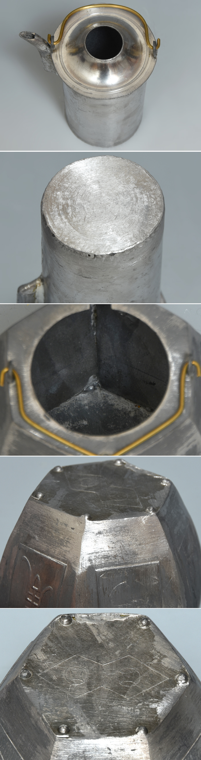 中国美術 龍鳳凰文様六角酒燗器 酒燗器 亀摘蓋 錫製 熱燗器 龍 鳳凰 亀 金属工芸 ちろり |