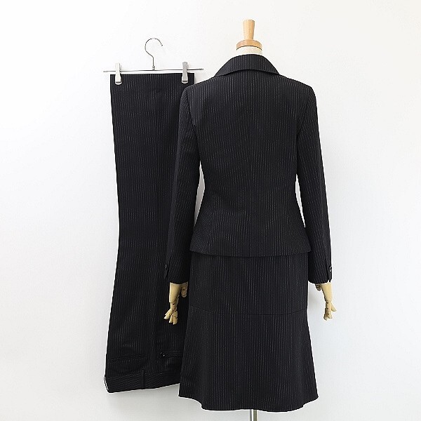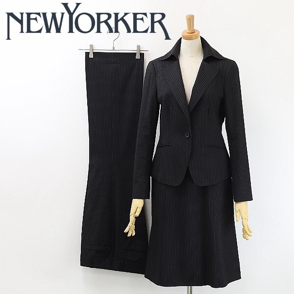◆NEWYORKER ニューヨーカー ストライプ柄 1釦 ジャケット&スカート&パンツ 3ピース スーツ セットアップ 黒 ブラック 9 | |