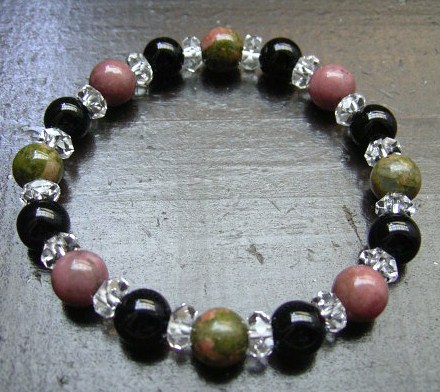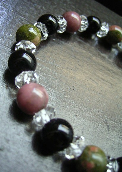 オニキスxユナカイトxロードナイトブレスレット 天然石 パワーストーン