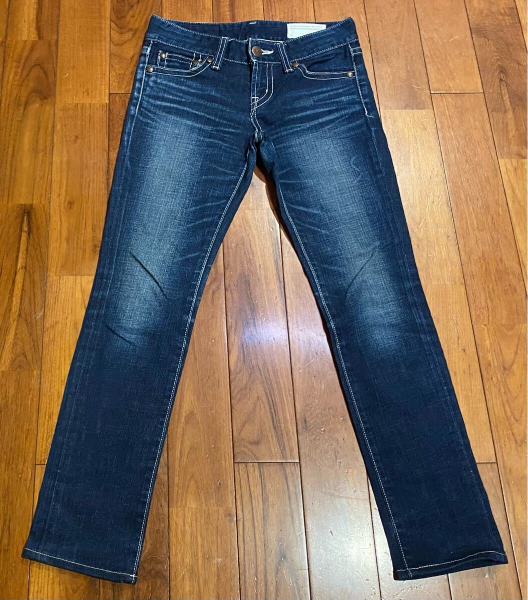 マウジーのストレッチスキニーデニム(ジーンズ)、NO.0103AC12-3590です。色はインディゴブルーです。USEDで裾直ししておりますが状態は良いです(10段階中8程度)。紙パッチ、ジッパーフライです。生地はストレッチ入りでコットン98%、ポリウレタン2%です。正規品です((株)バロックジャパンリミテッド、中国製)。サイズはW25でウエストは重ねずに平置きで約70cm、ヒップ約84cm、股上約20cm、股下約69cm、股下15cmのふともも部分約42cm、裾まわり約30cm、重量約430gです。発送はゆうパケットポストになります。