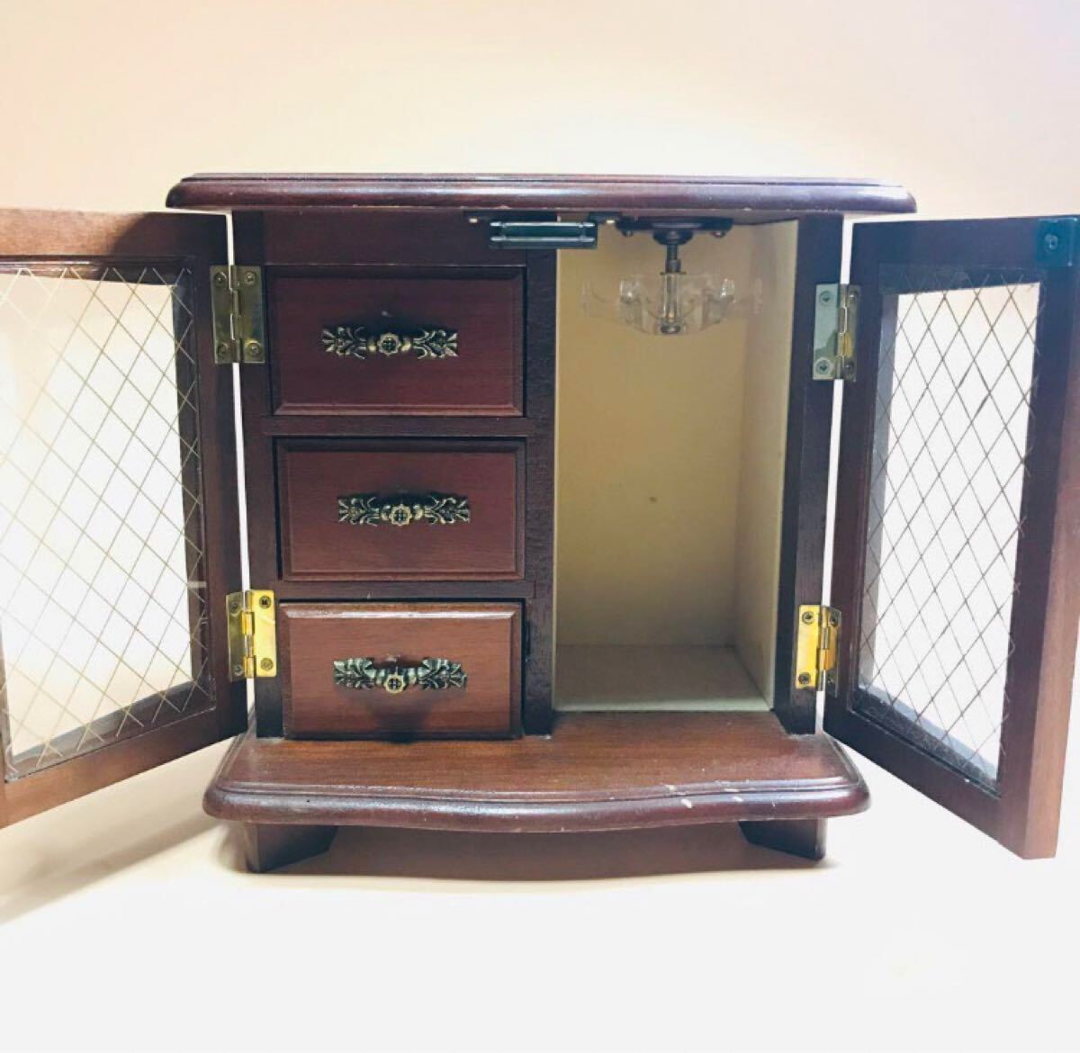 オルゴール 小箪笥 いとしのエリー アンティーク置物 小物入れ