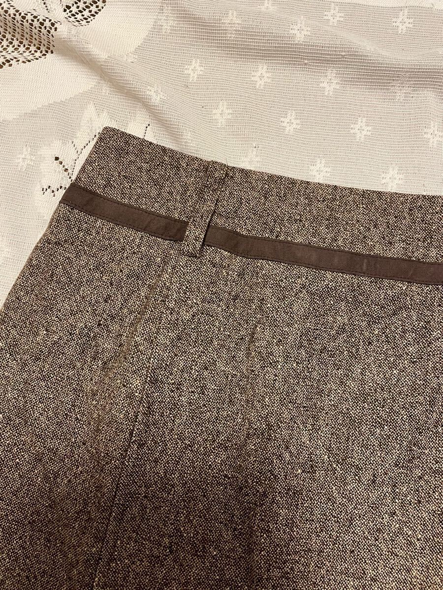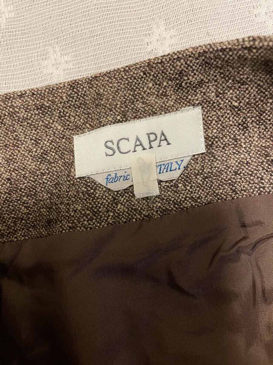・ブランド名:SCAPA ・サイズ:40 ・素材:表地~毛100% 裏地〜キュプラ その他〜人工皮革 ・平置実寸:W35 総丈74 <素人採寸ですので多少の誤差はお許しください> ・USED-美品。1シーズンの着用です。まだまだ着用していただけると思います ・めだった汚れシミは無い様に思います。シワが少しあります ・6枚はぎの茶系ツイード調スカートになります ・ベルト通しがあります。サイドファスナーです ※汚れシミなど出来る限りチェックしておりますが万一見落とし等ございましたらお許しください※ | |||