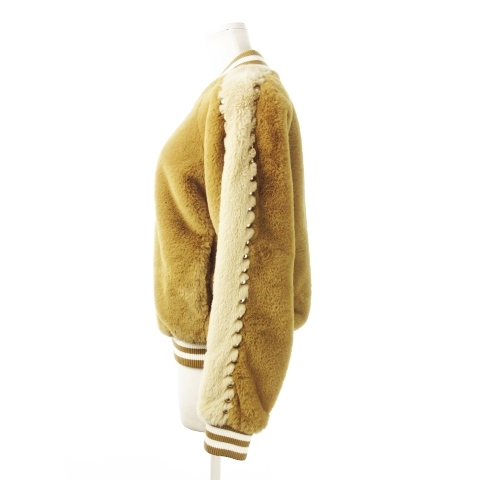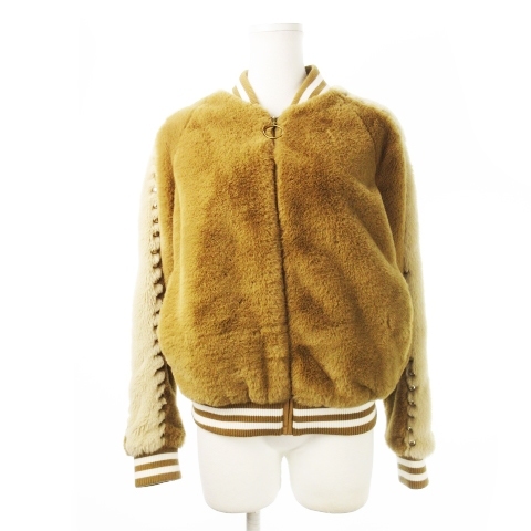 マザー mother フェイクファースタジャン ジャンパー ブルゾン ジップアップ ライン スタッズ 柄裏地 S 茶 ブラウン /CK23