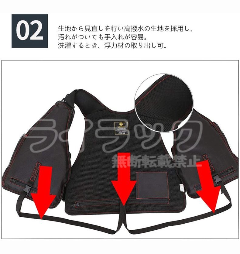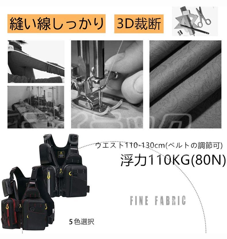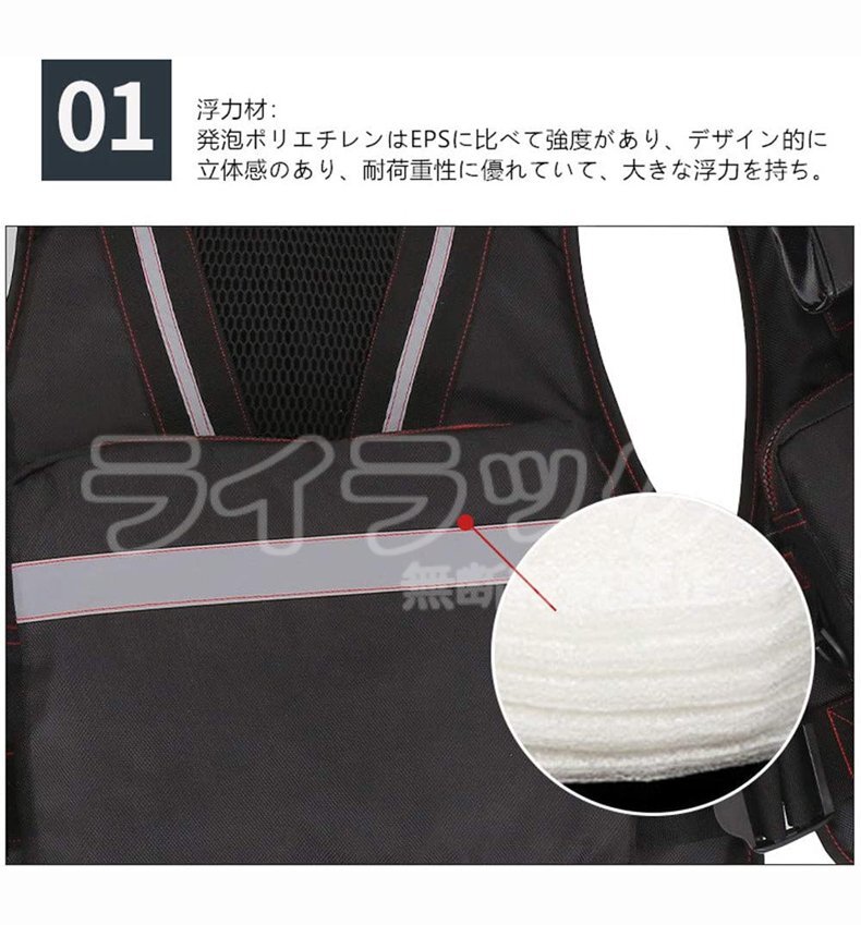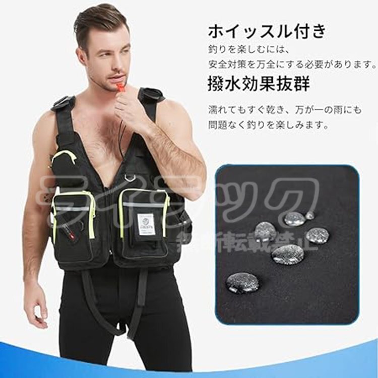 【ブラック】ライフジャケット フィッシングベスト 釣りウェア ゲームベスト 収納ポケット 磯用 防撥通気 軽く便利保護 CE認証あり