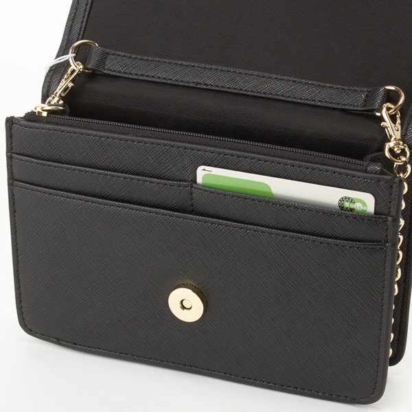 ジップポケットやカードホルダーを付け、そのままお財布として使える仕様です。