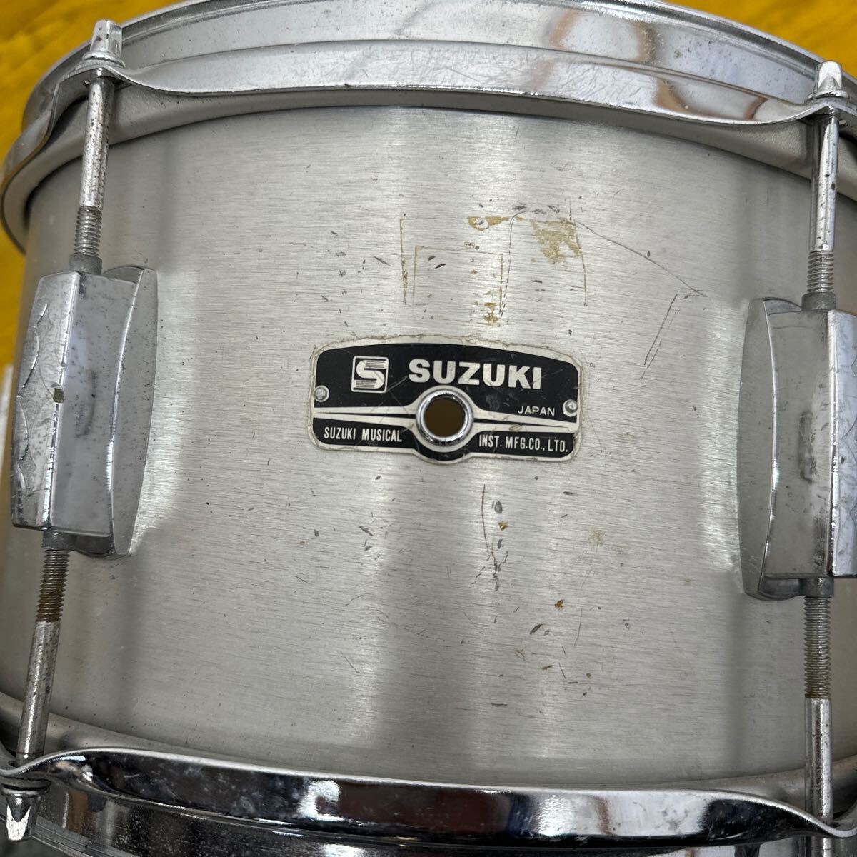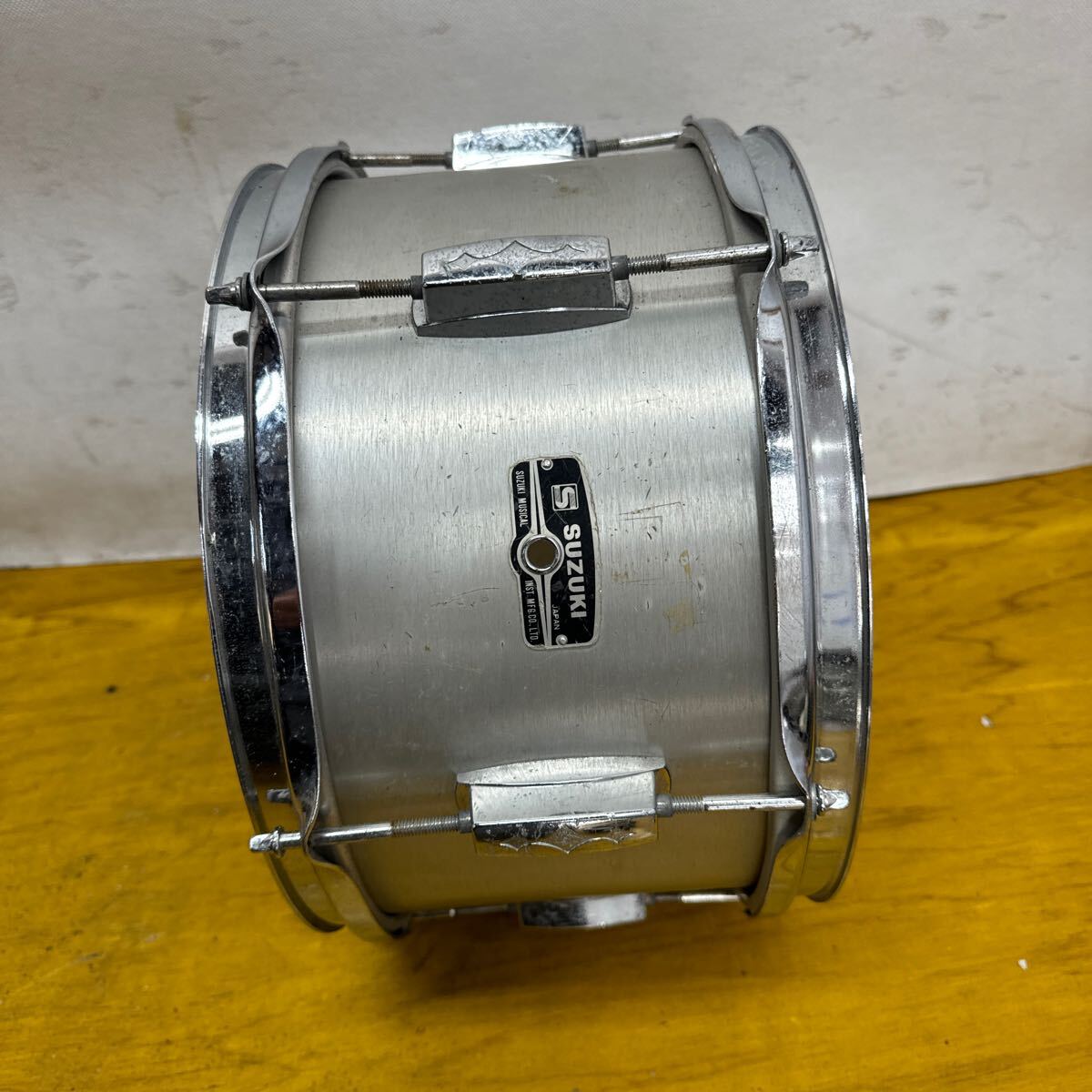 ・ SUZUKI スズキ スネアドラム マーチング アルミ ドラム 12インチ 現状 破れ無し シルバー 打楽器 BA-0212 太鼓 鼓笛隊