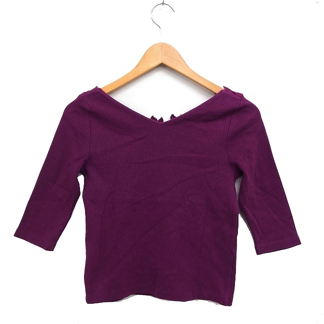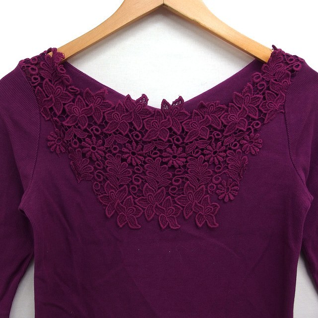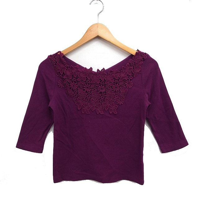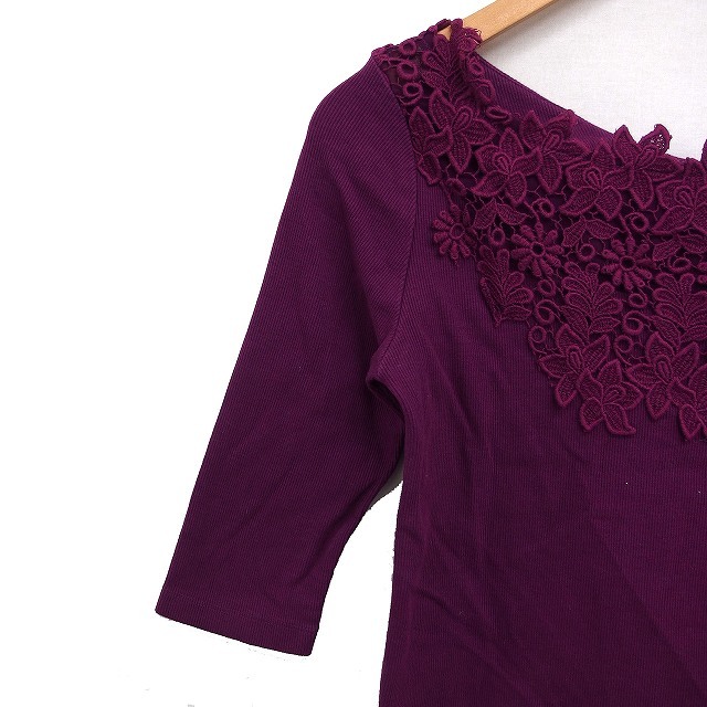 ノエラ Noela フラワーレース リブ カットソー6分袖 コットン 綿 F パープル 紫 /FT42 レディース