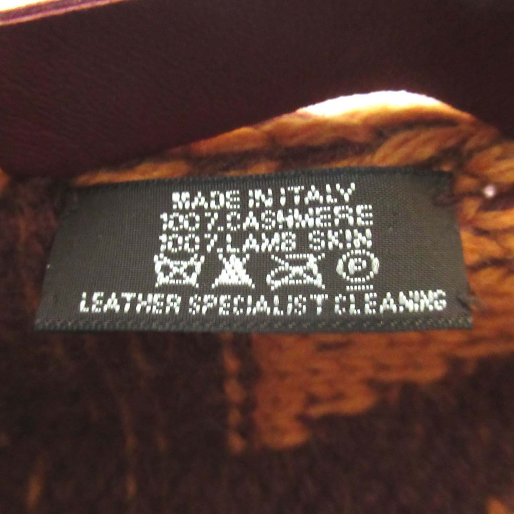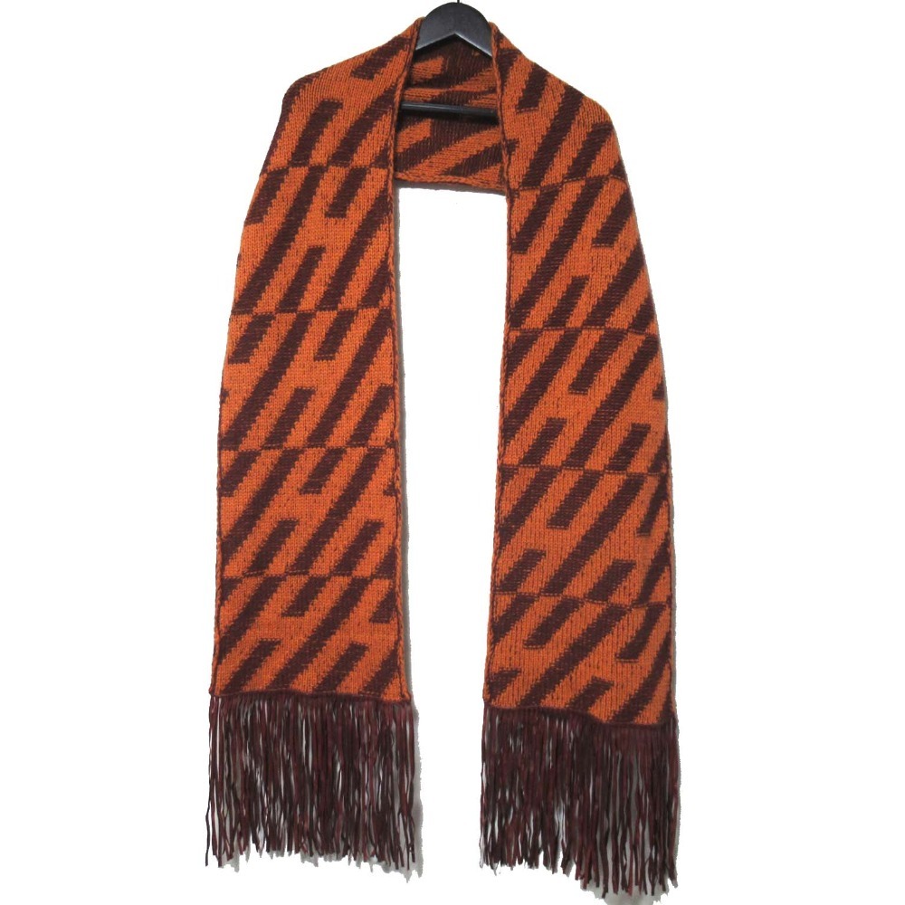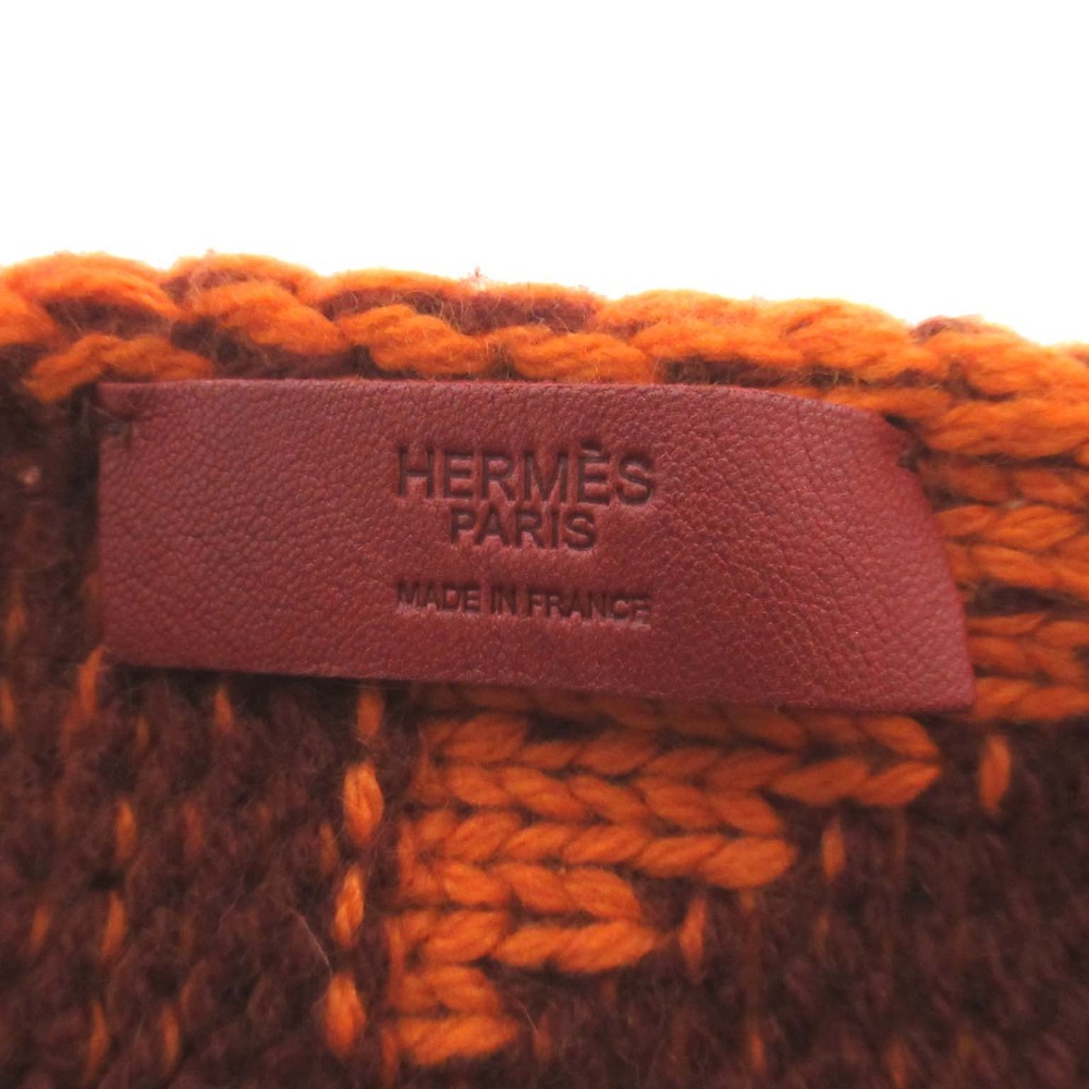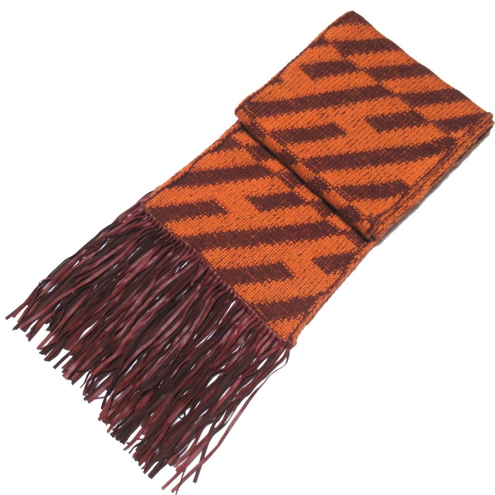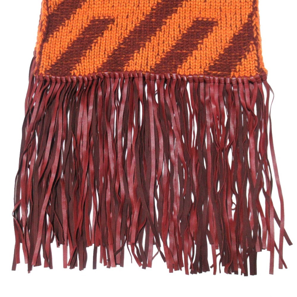 商品名:美品 HERMES エルメス ラムレザーフリンジ カシミヤ100% ニット ロングマフラー オレンジ×ブラウン