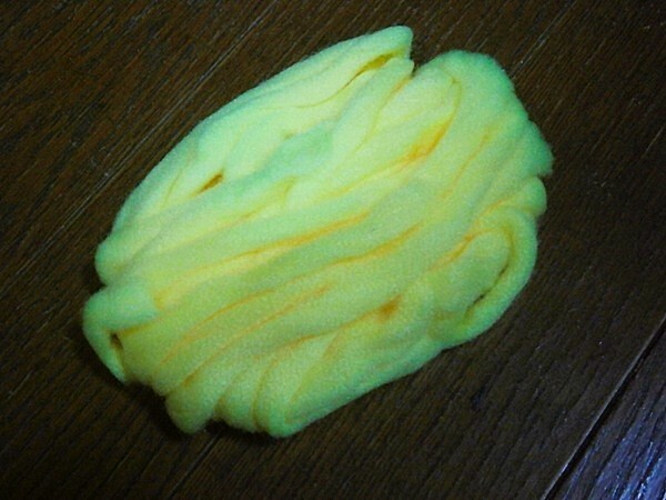 エッグ・ヤーン(蛍光オレンジ/バフ)です。