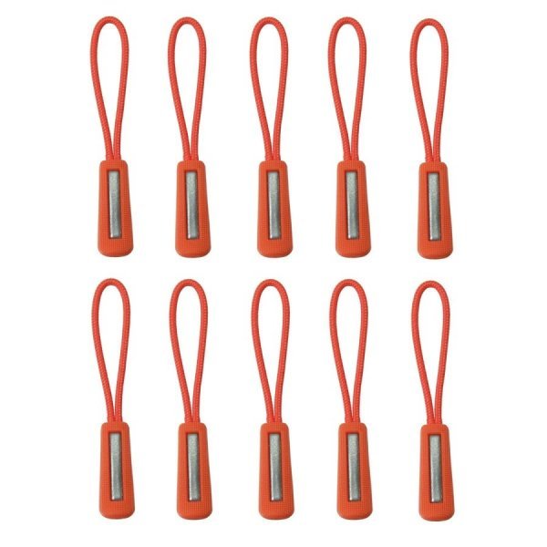 ジッパープル 反射材付き ジッパータブ ファスナー チャック 取り付け簡単 つかみやすい ノンスリップ プルコード 10本セット(オレンジ)