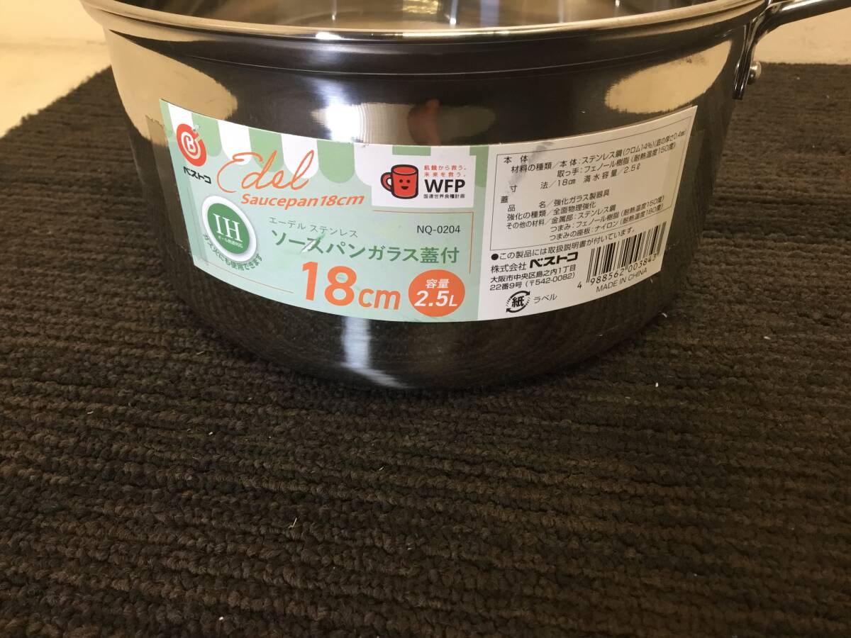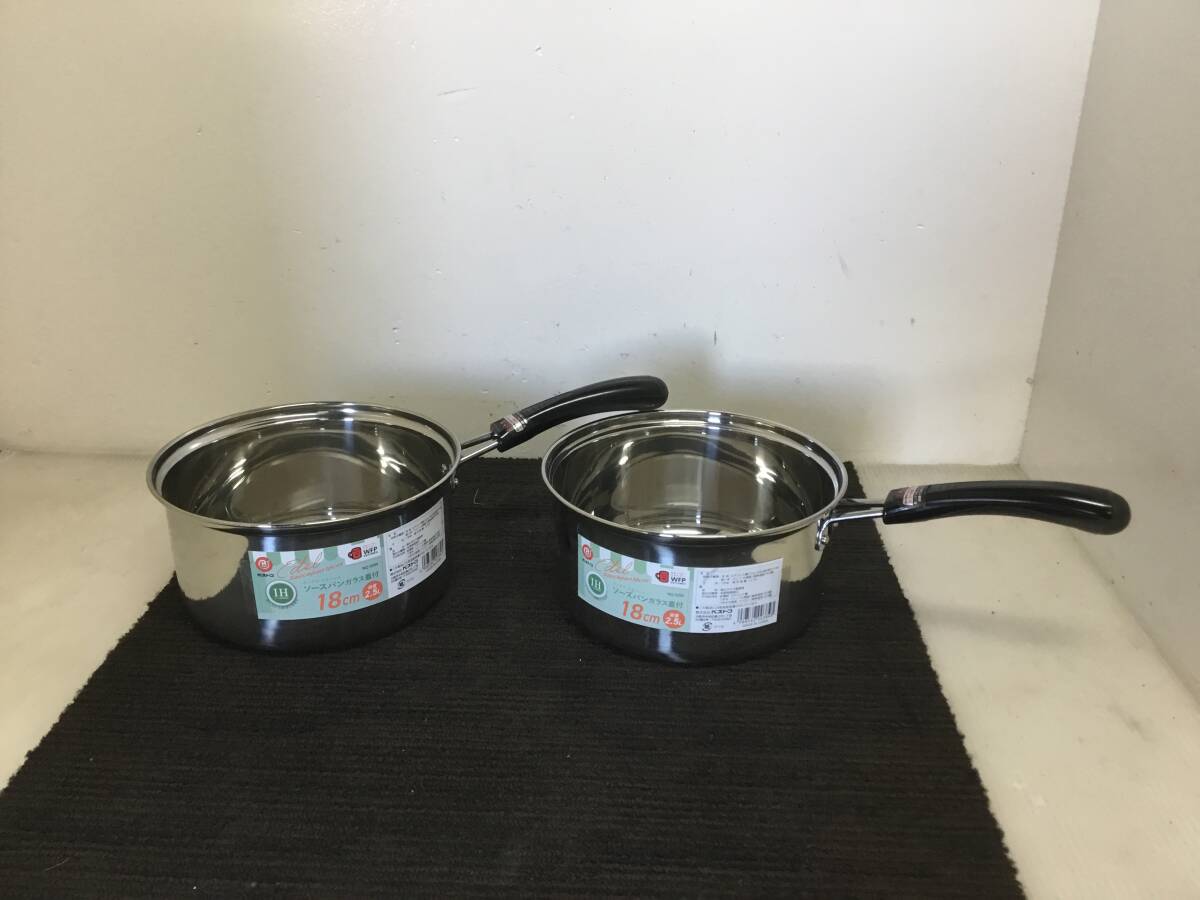 △ ① 岐阜発/ 未使用/ ベストコ ヨーデル/ ステンレス製/ 片手鍋/ 18cm/ ガラスフタなし/ 2個セット/ ソースパン/ 現状品/ R7.3/1 △ |