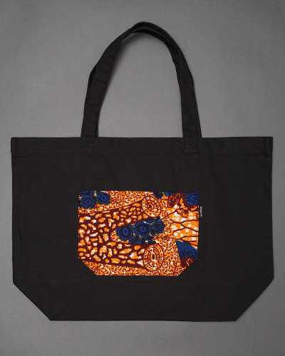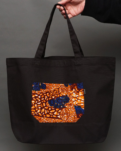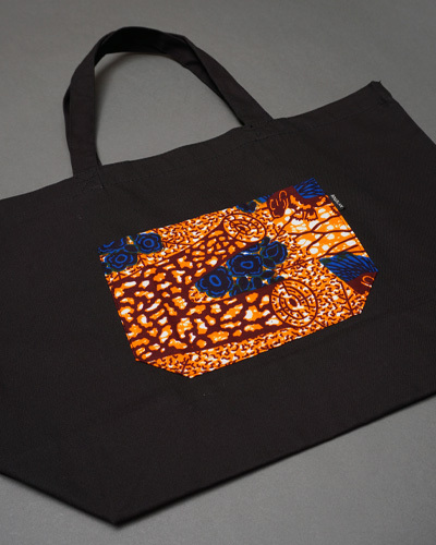 丈夫なキャンバス生地にアフリカンワックスのポケットが付いた可愛いトートバッグです。