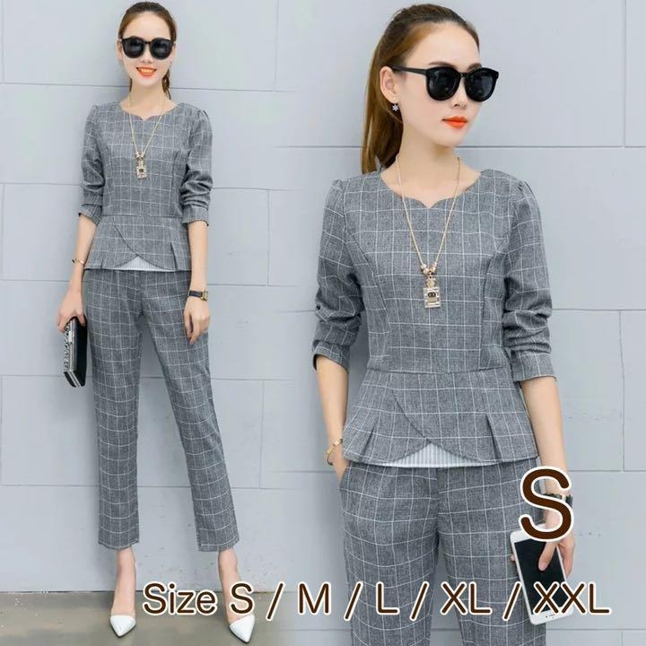 婦人用 チェック柄フォーマルパンツスーツ セットアップ