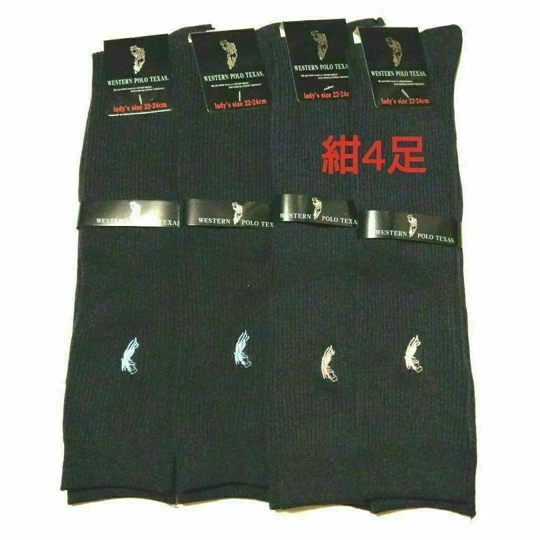 ウエスタンポロ WESTERN POLO TEXAS 紺色リブハイソックス4足セット通学ソックス まとめ売り