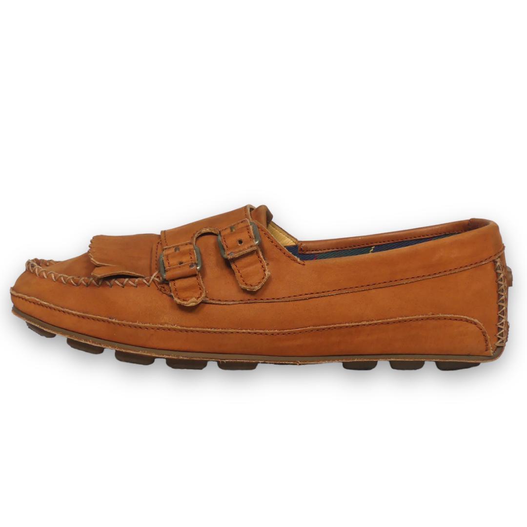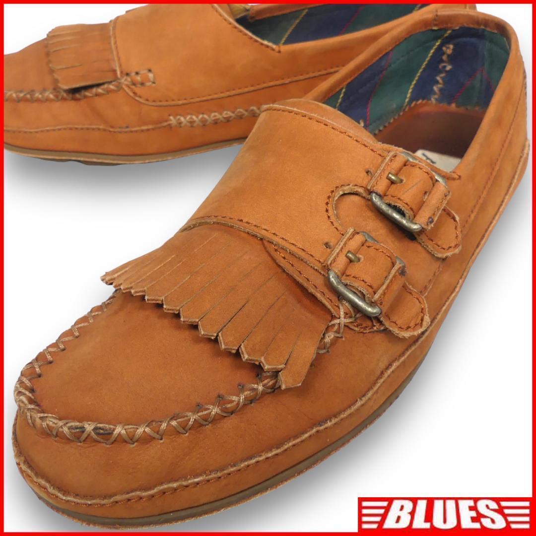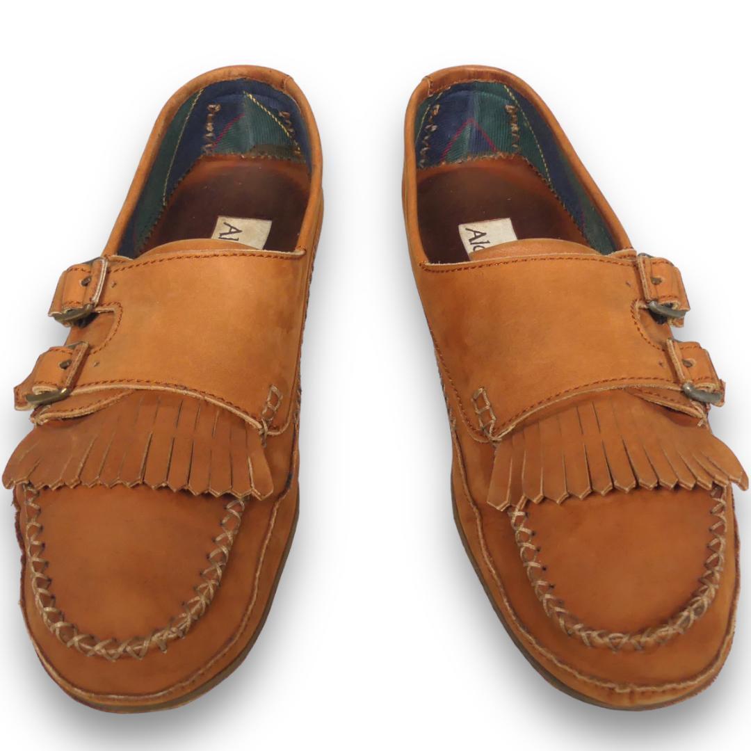 即決★イタリア製 Aldo Brue★25.5cm位 レザースリッポン アルドブルエ メンズ 茶 ダブルモンクストラップ 本革 ドライビングシューズ 本皮