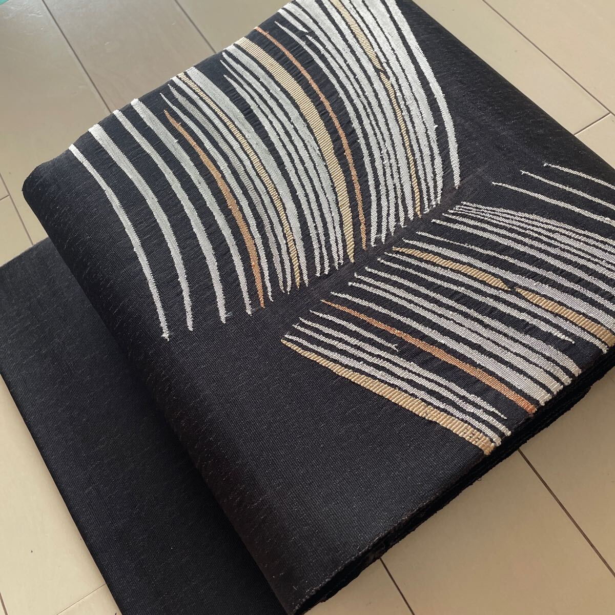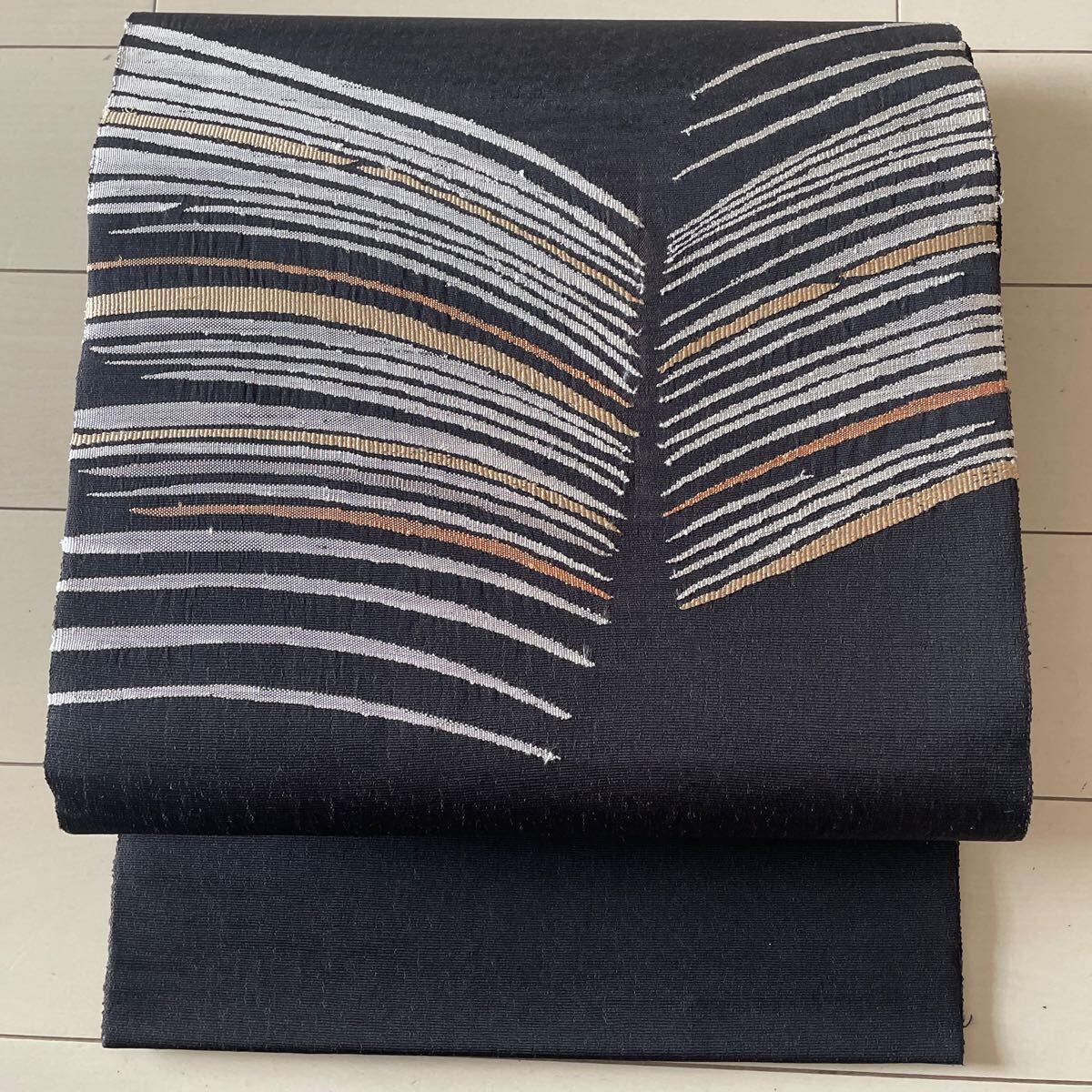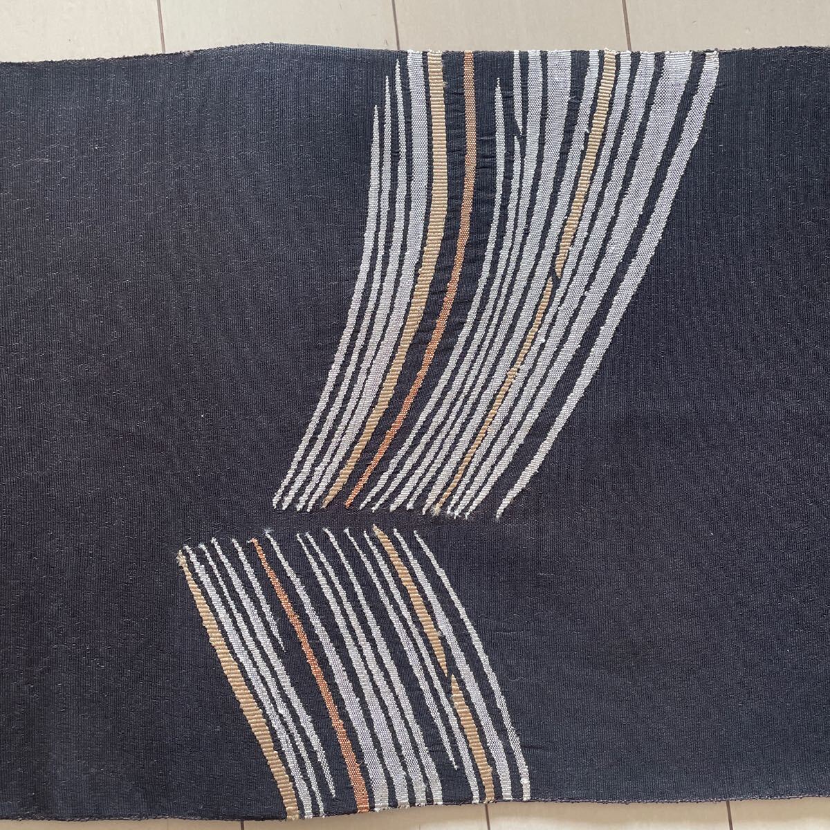 【 黒に白・砥粉色 モダン柄 袋帯】