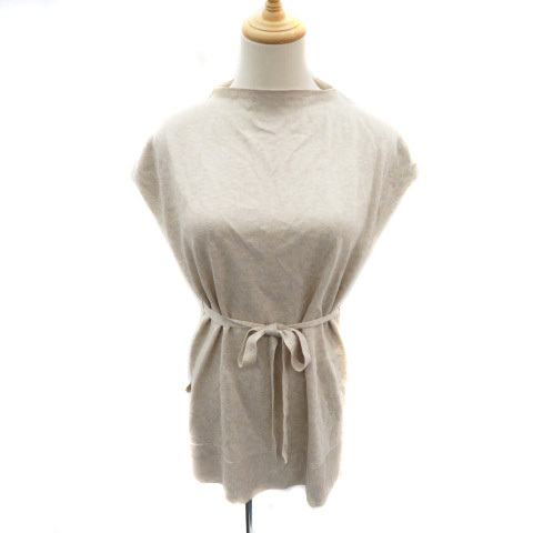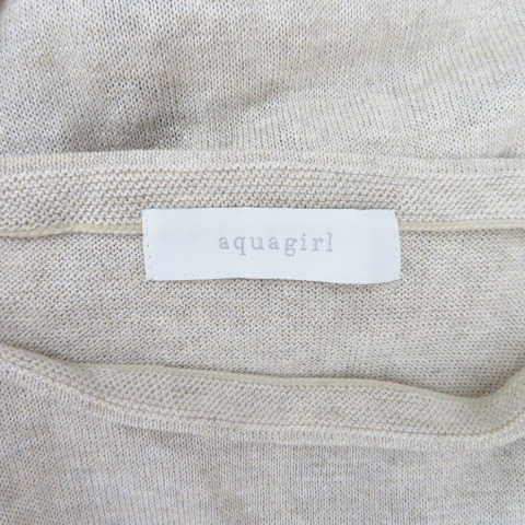 アクアガール aquagirl ニット カットソー 半袖 ボトルネック ウエストリボン ベージュ /YK3 レディース